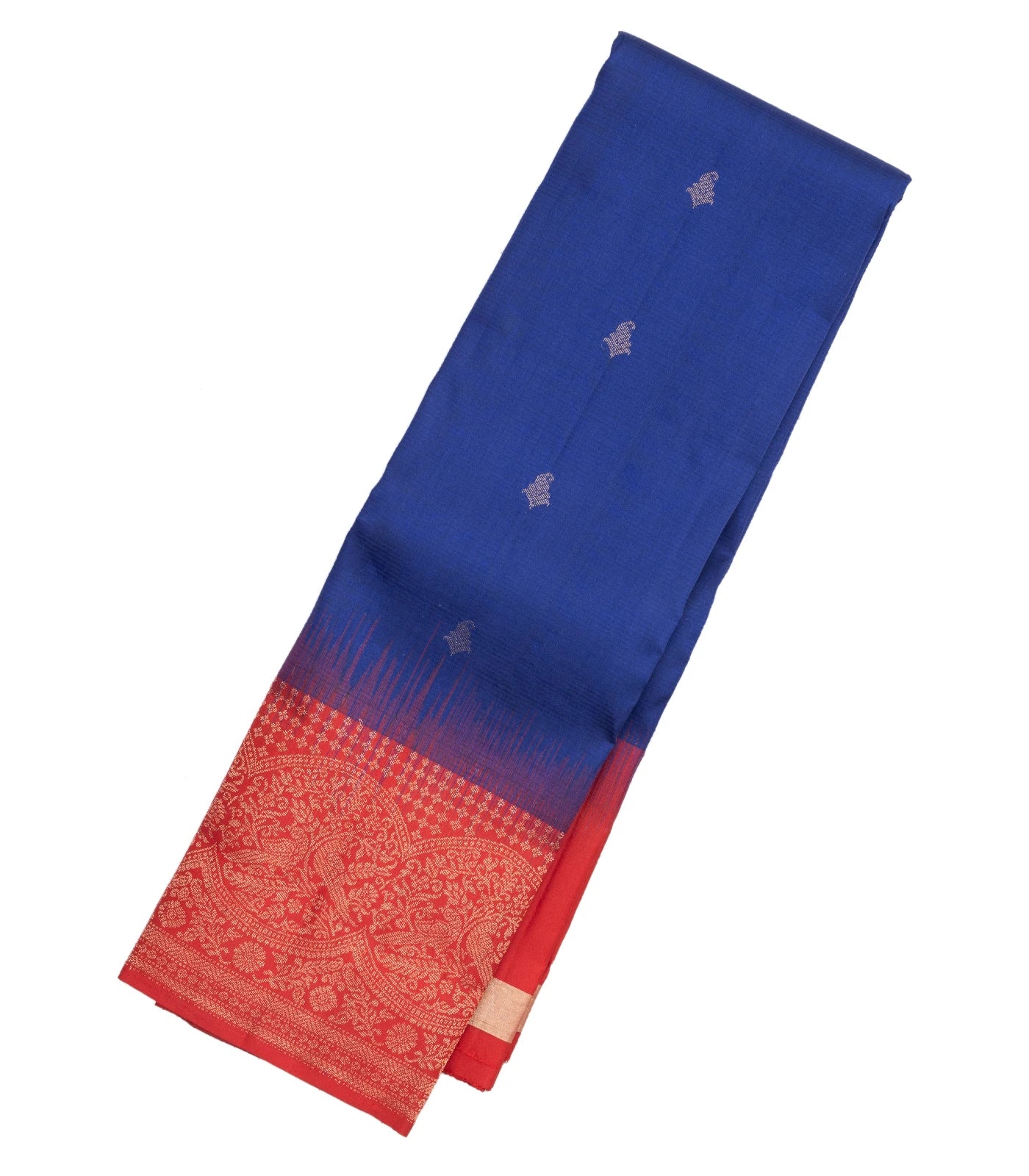 Dark Blue Handloom Soft Silk Saree With Mango Buttas & Red Border-SO4056