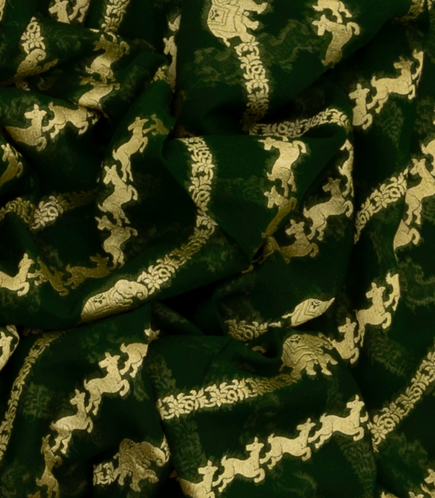 Dark Green Banarasi Khaddi Georgette Saree With Diagonal Stripes-Dark Green