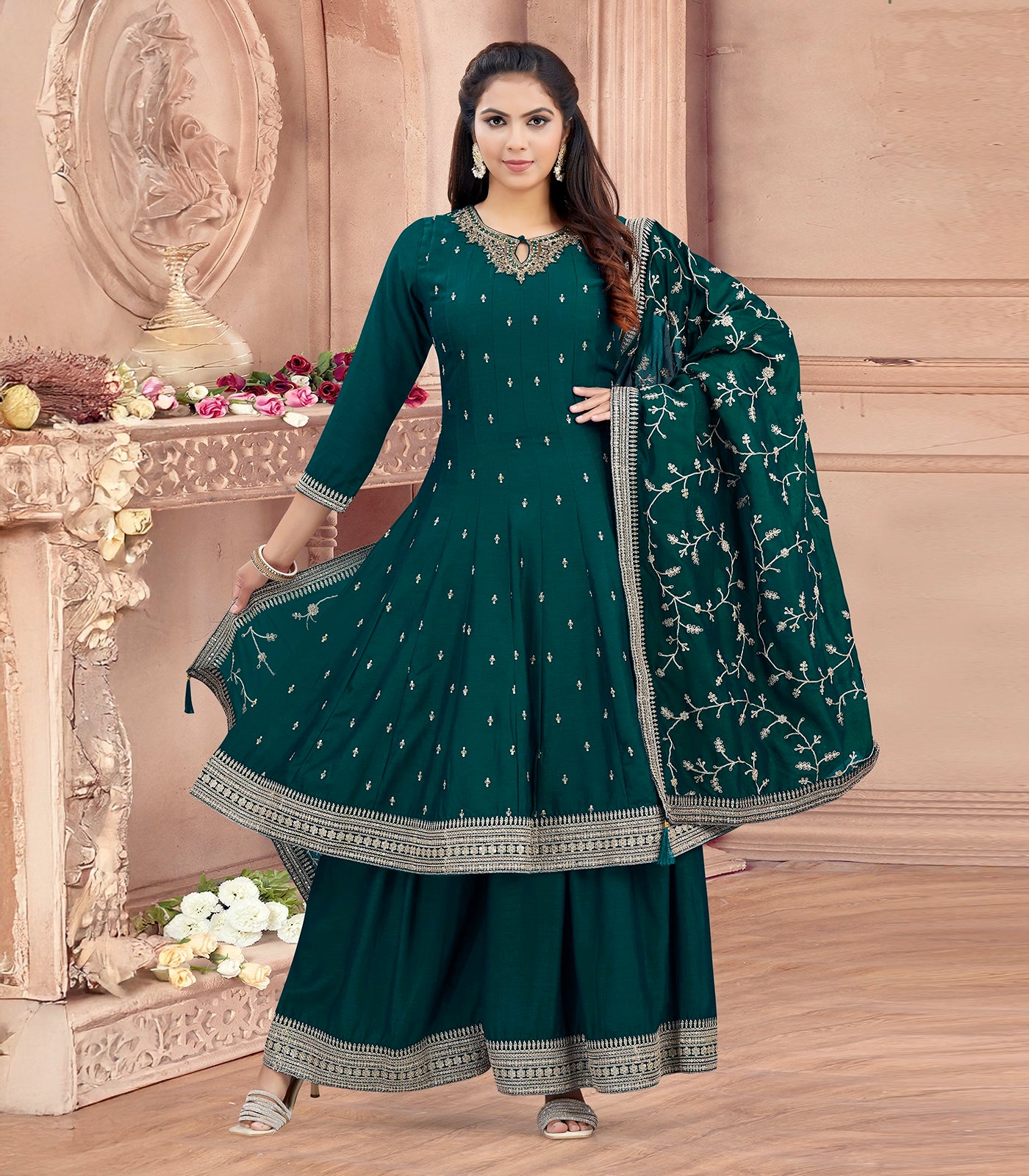 Dark Green Festive Embroidered Sharara Set-RC5516