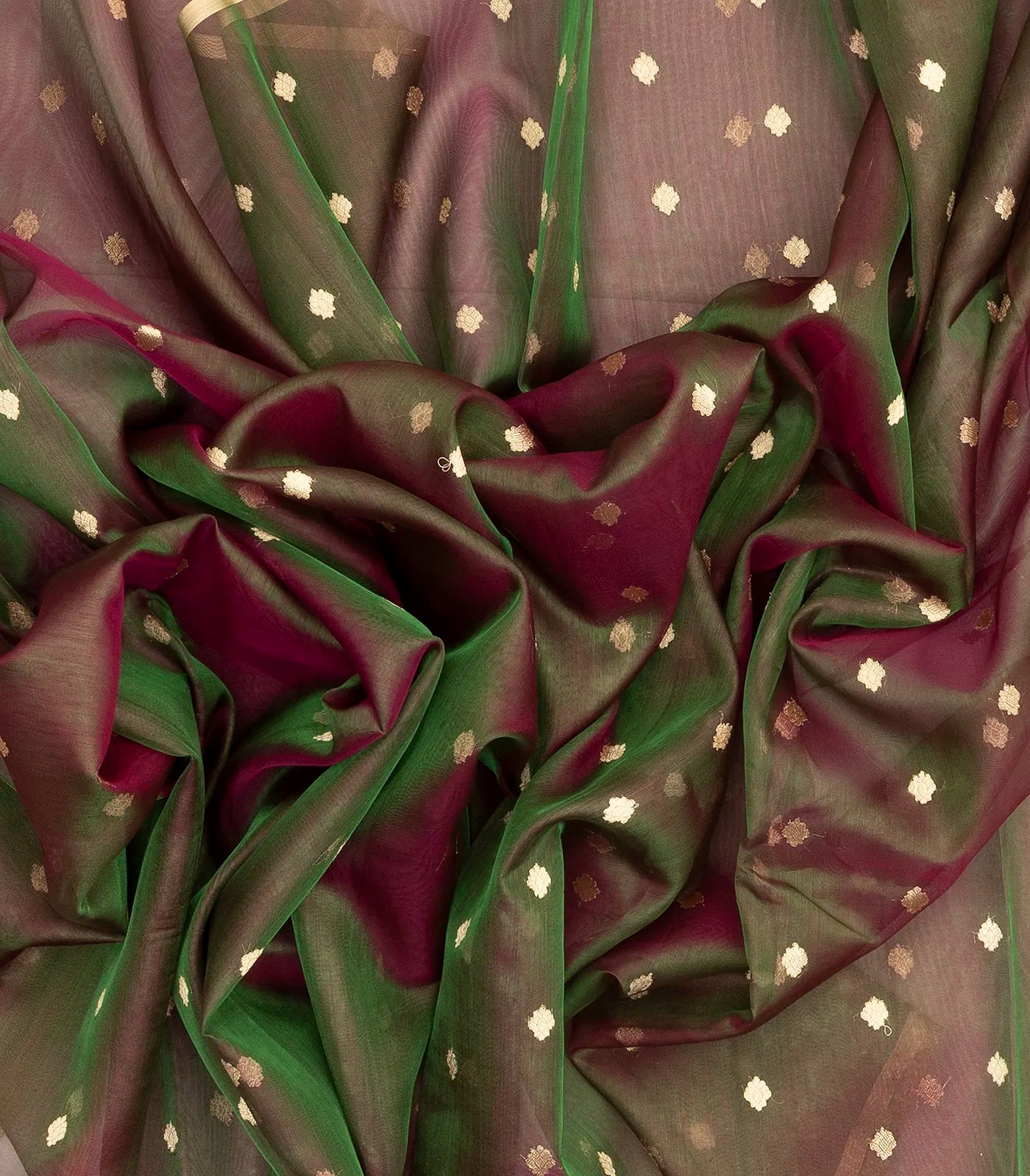 Dark Green Handloom Banarasi Tissue Silk Saree With Floral Motifs-BE1652