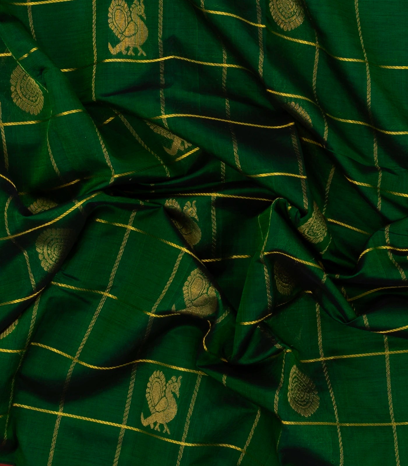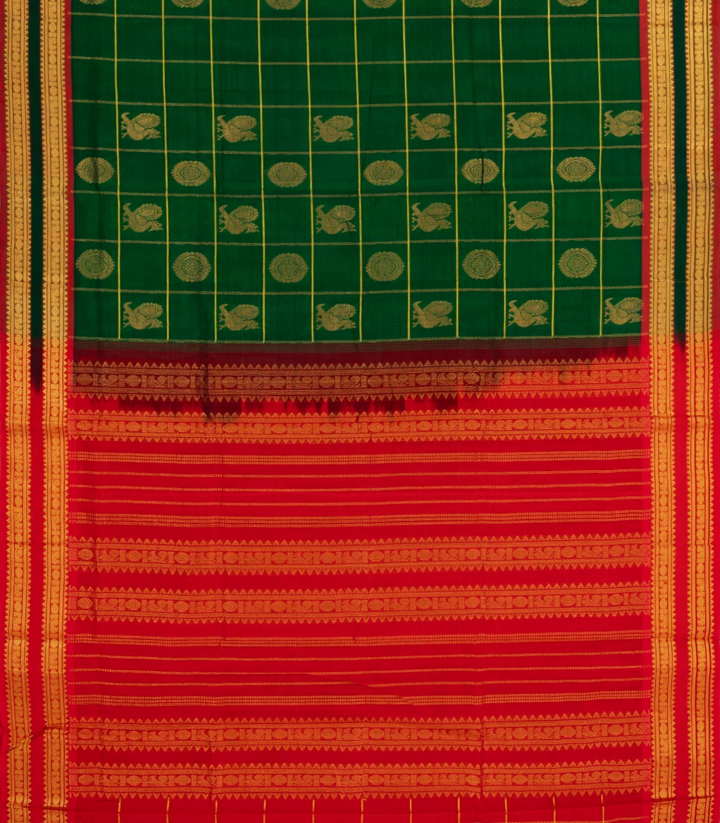 Dark Green Handloom Silk Cotton Saree With Checks & Buttas-SC3934