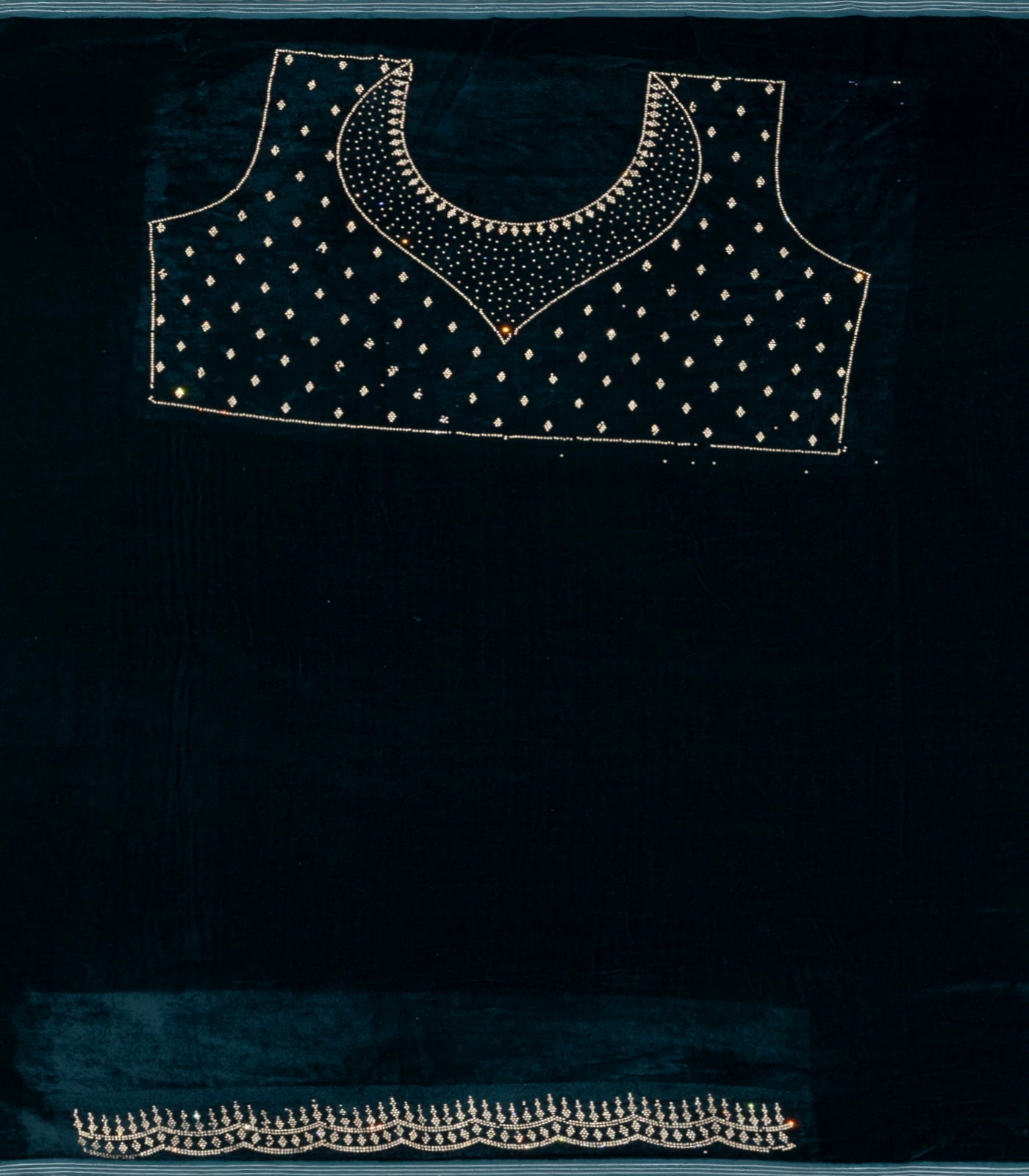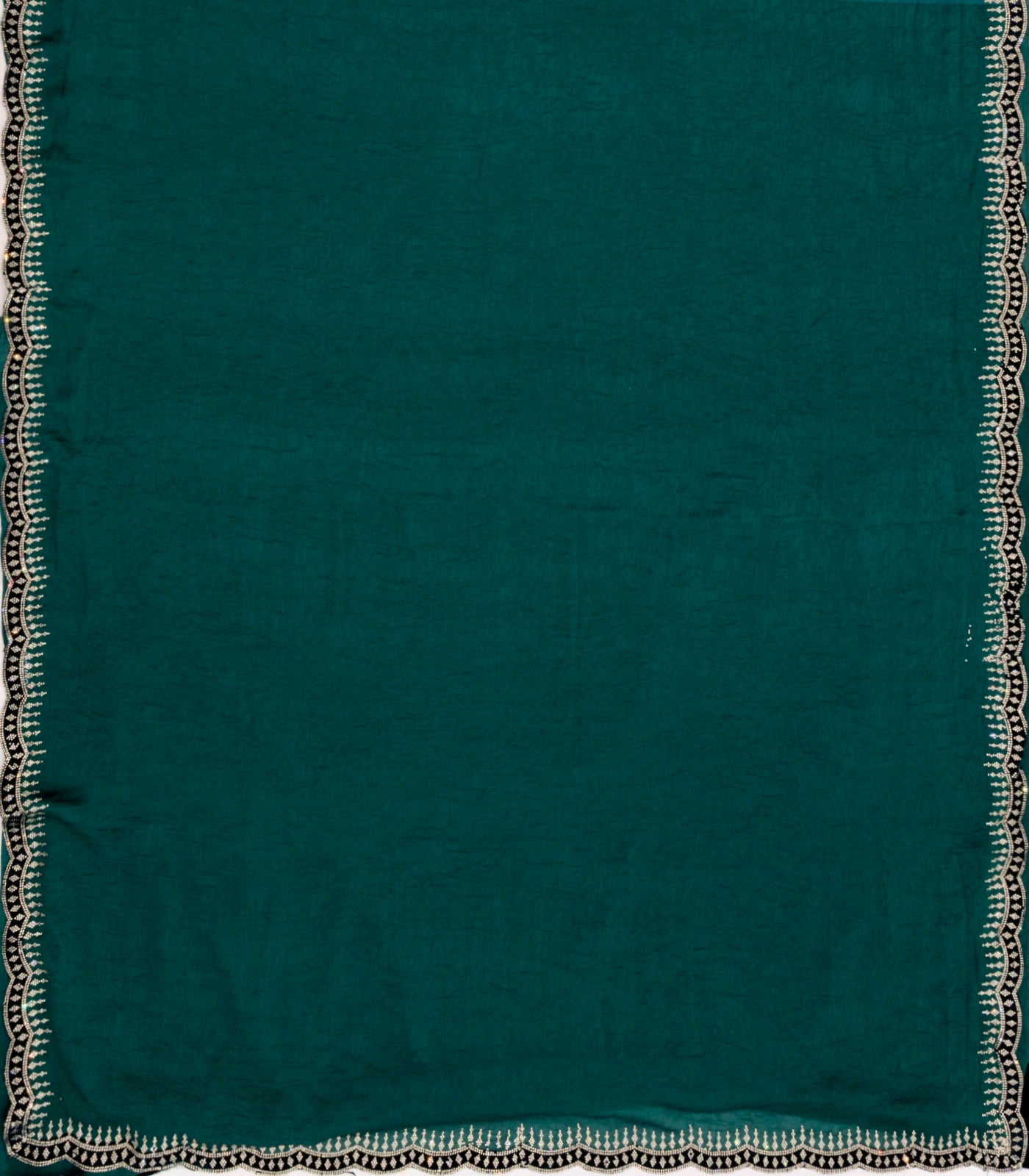 Dark Green Synthetics Moss Crush Saree With Velvet Border -BL5464