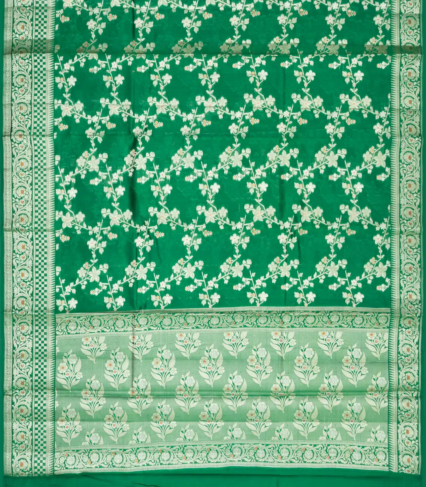 Dark Green Woven Dupion Silk Saree With Floral Jaal Motifs-DS0516