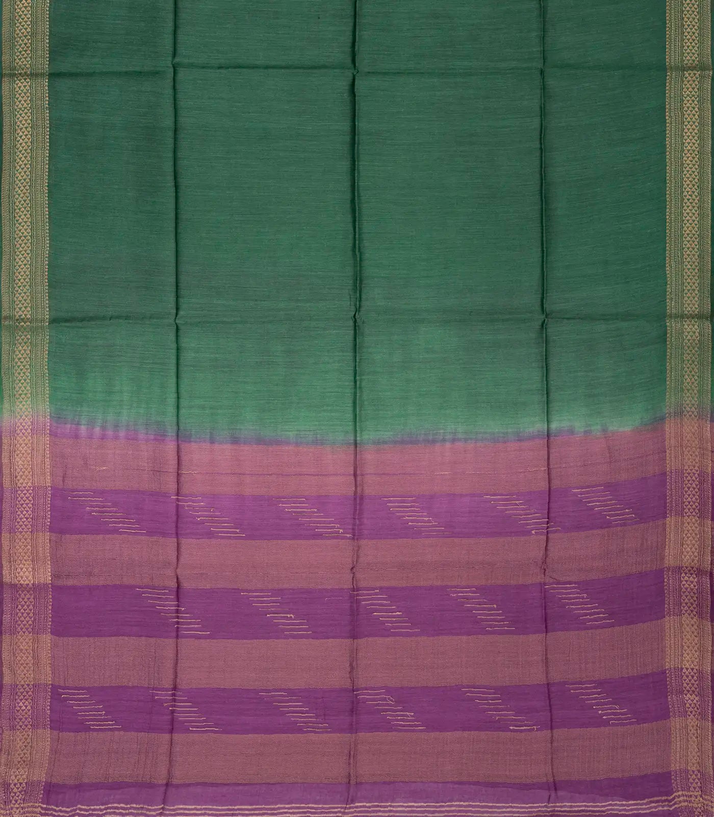 This woven tussar silk saree is filled with plain dark green body along with border and contrast pallu