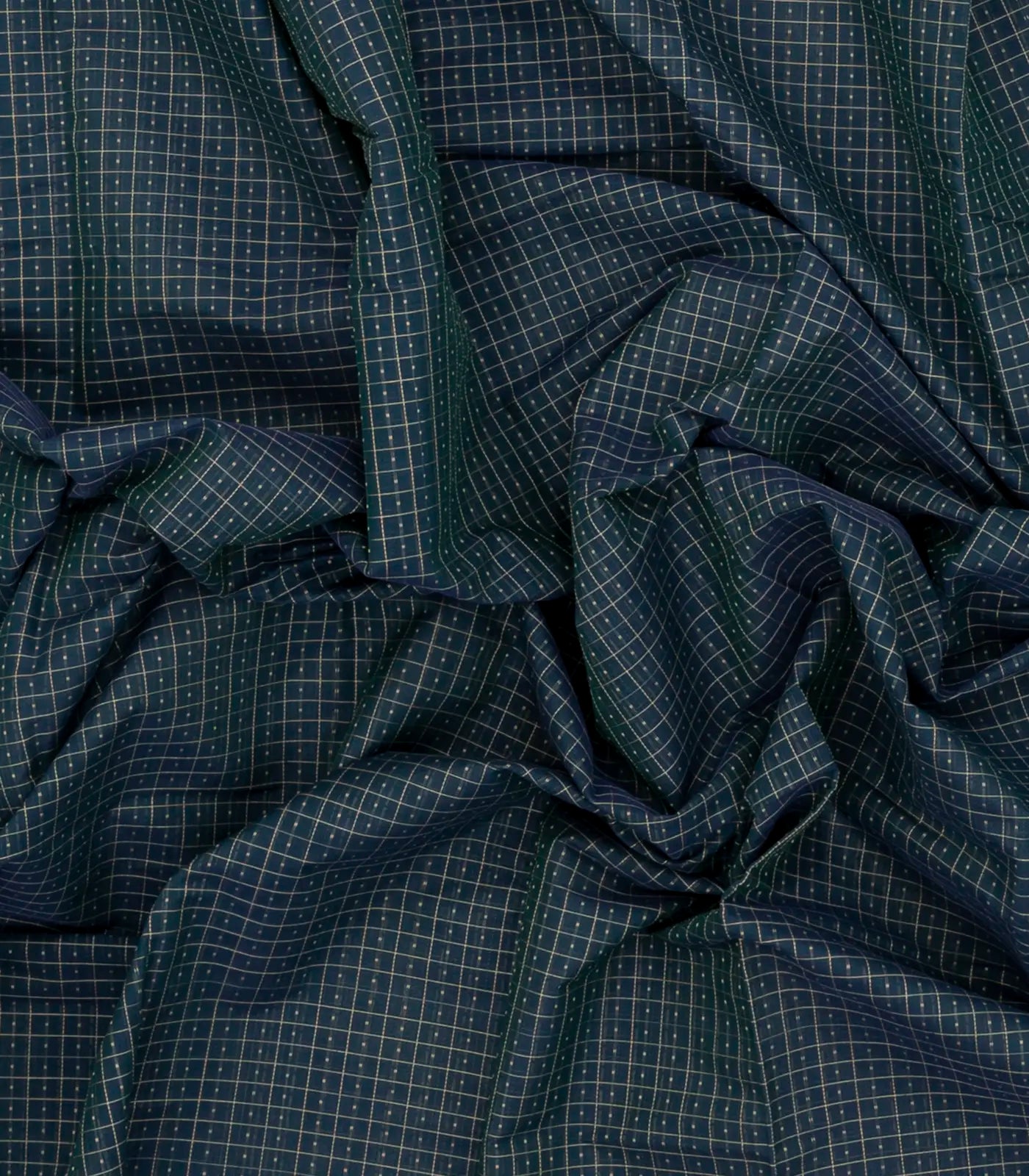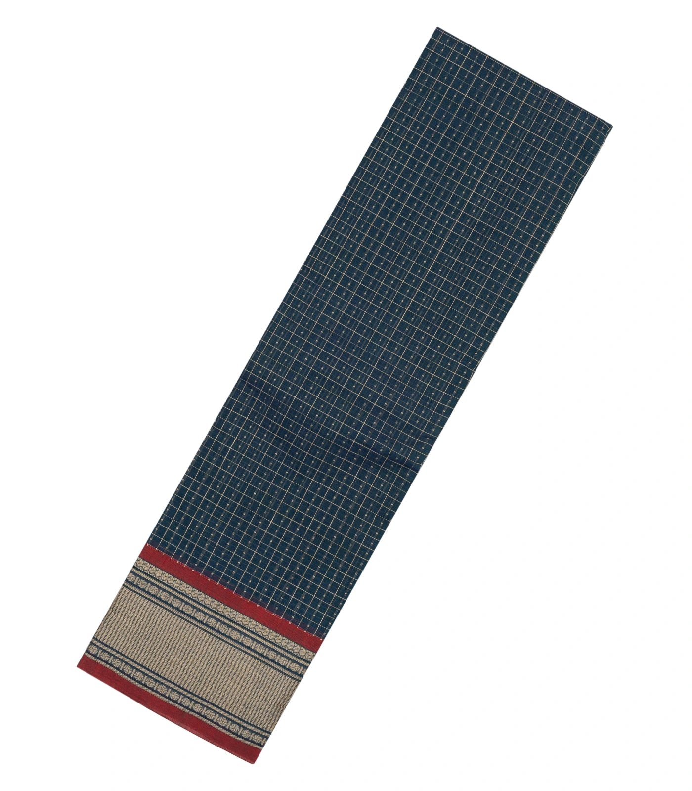 Dark Grey Handloom Kanchi Cotton Saree With Chekcs & Buttas-KC1732