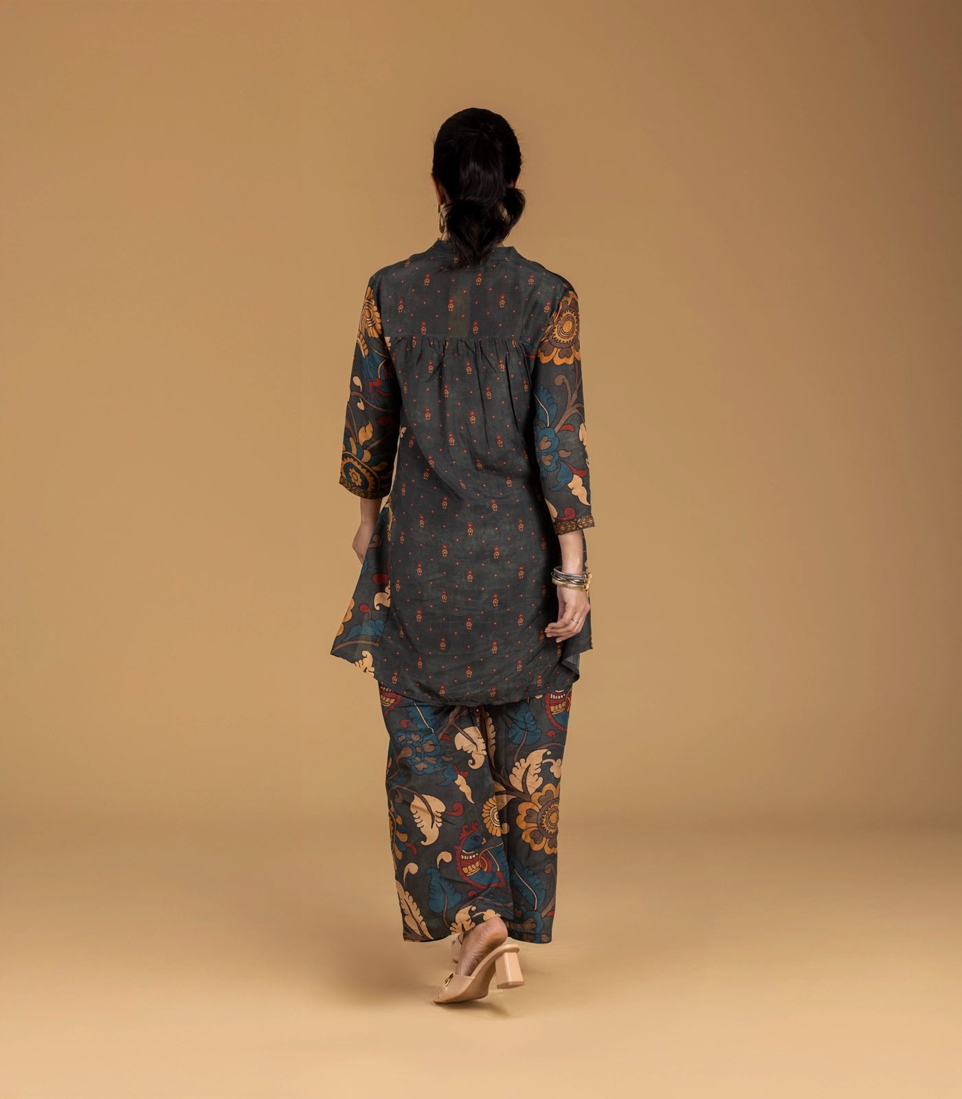 Dark Grey Kalamkari Inspired Printed Co-Ord Set-CO5013