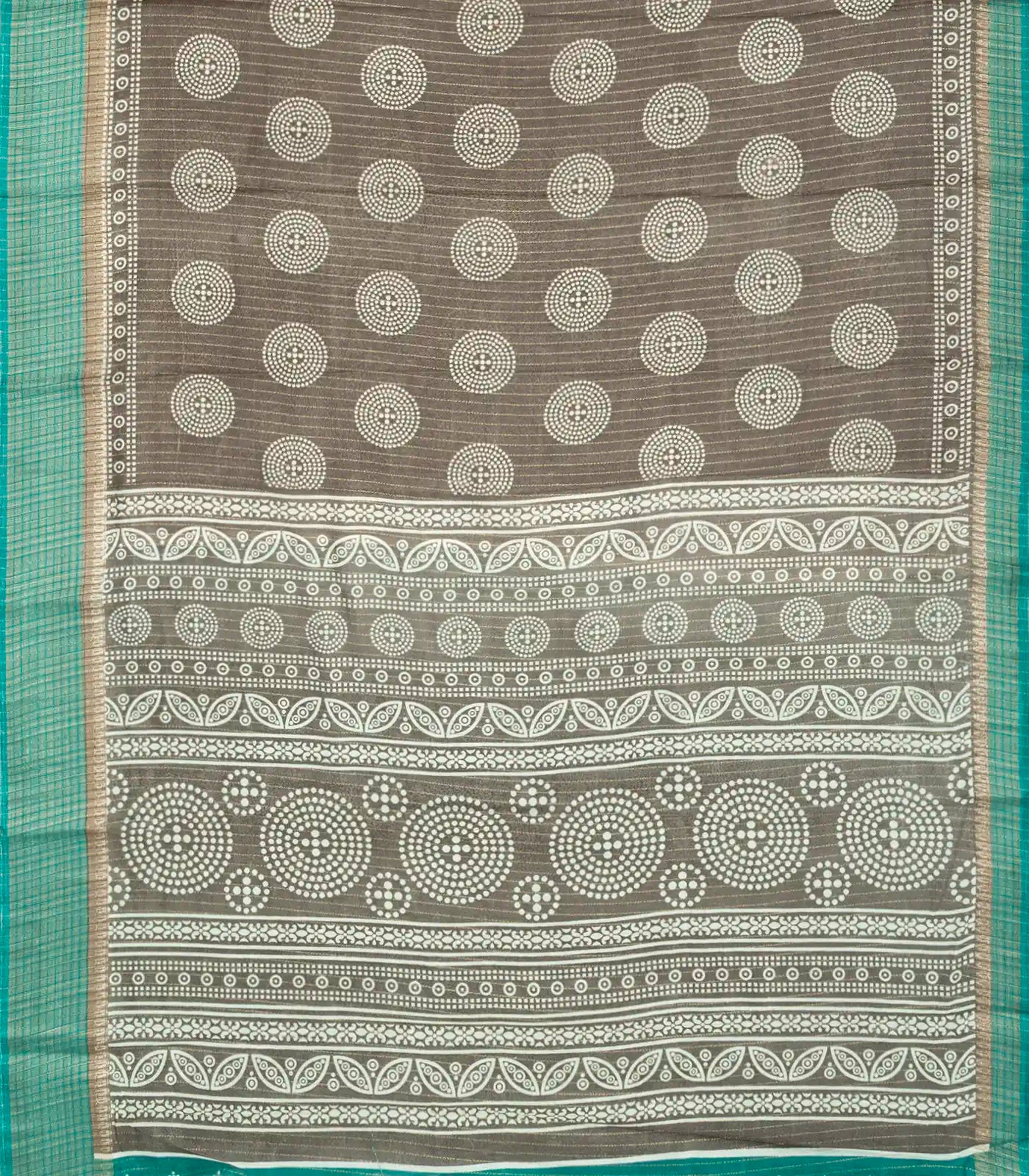 Dark Grey Woven Synthetic Dola Saree With Printed Motifs & Contrast Border-BL4511