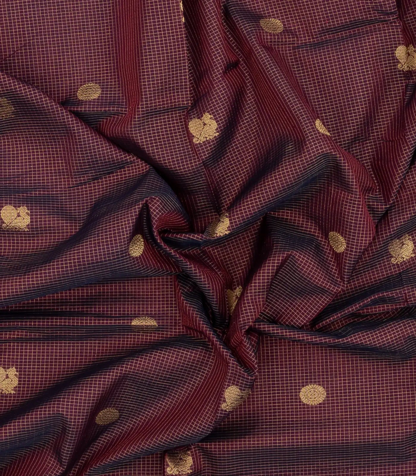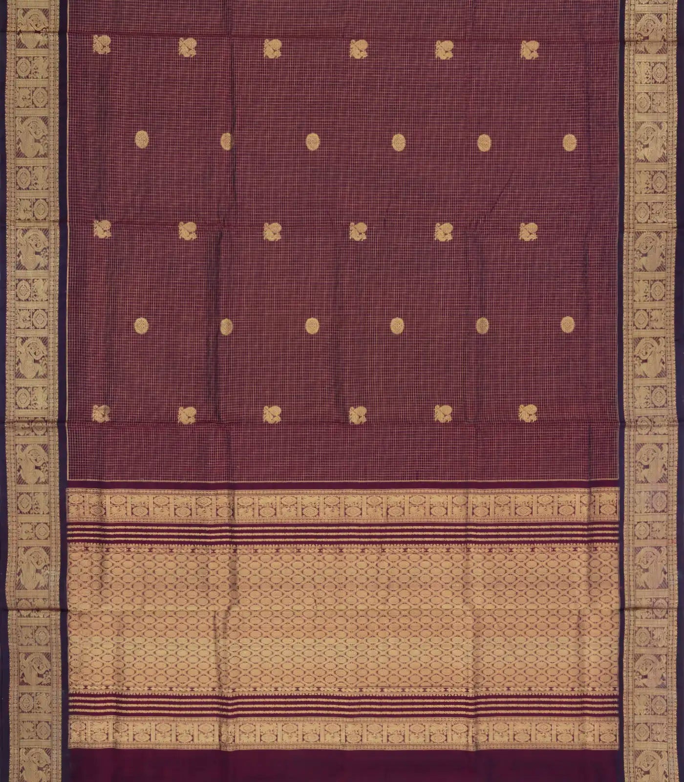Dark Maroon Handloom Silk Cotton Saree With Checks & Buttas-SC4241