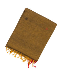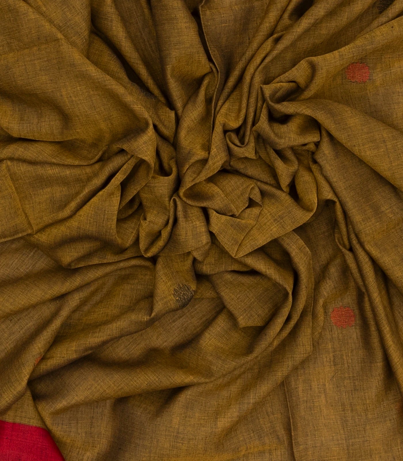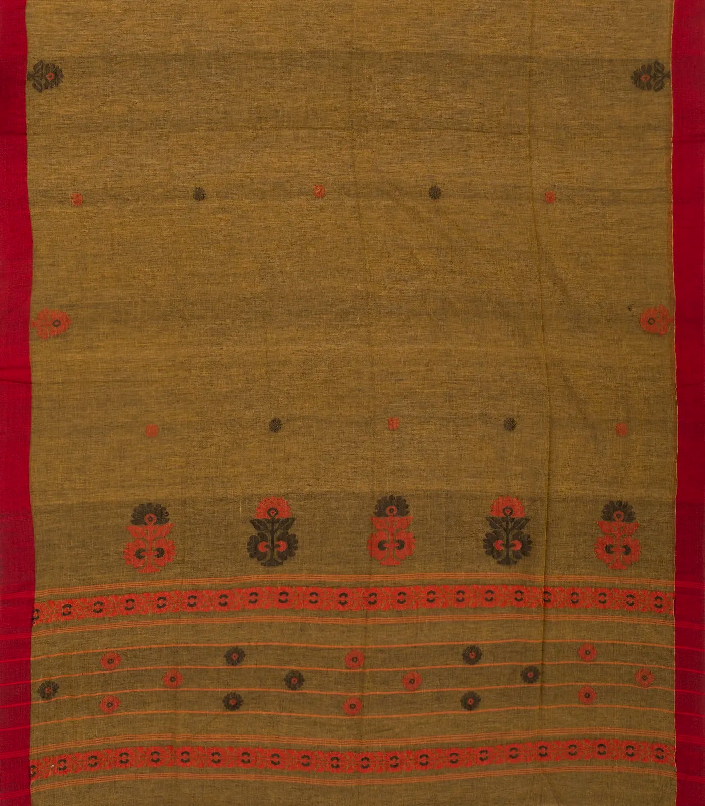 Dark Olive Handloom Bengal Cotton Saree With Floral Buttas-BG0972