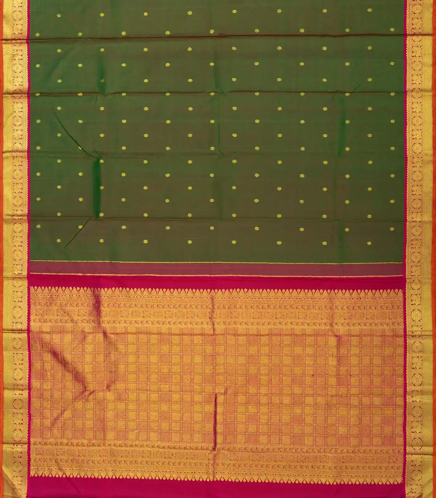 Dark Olive Handloom Kanchipuram Silk Saree With Chakaram Buttas-KA12094