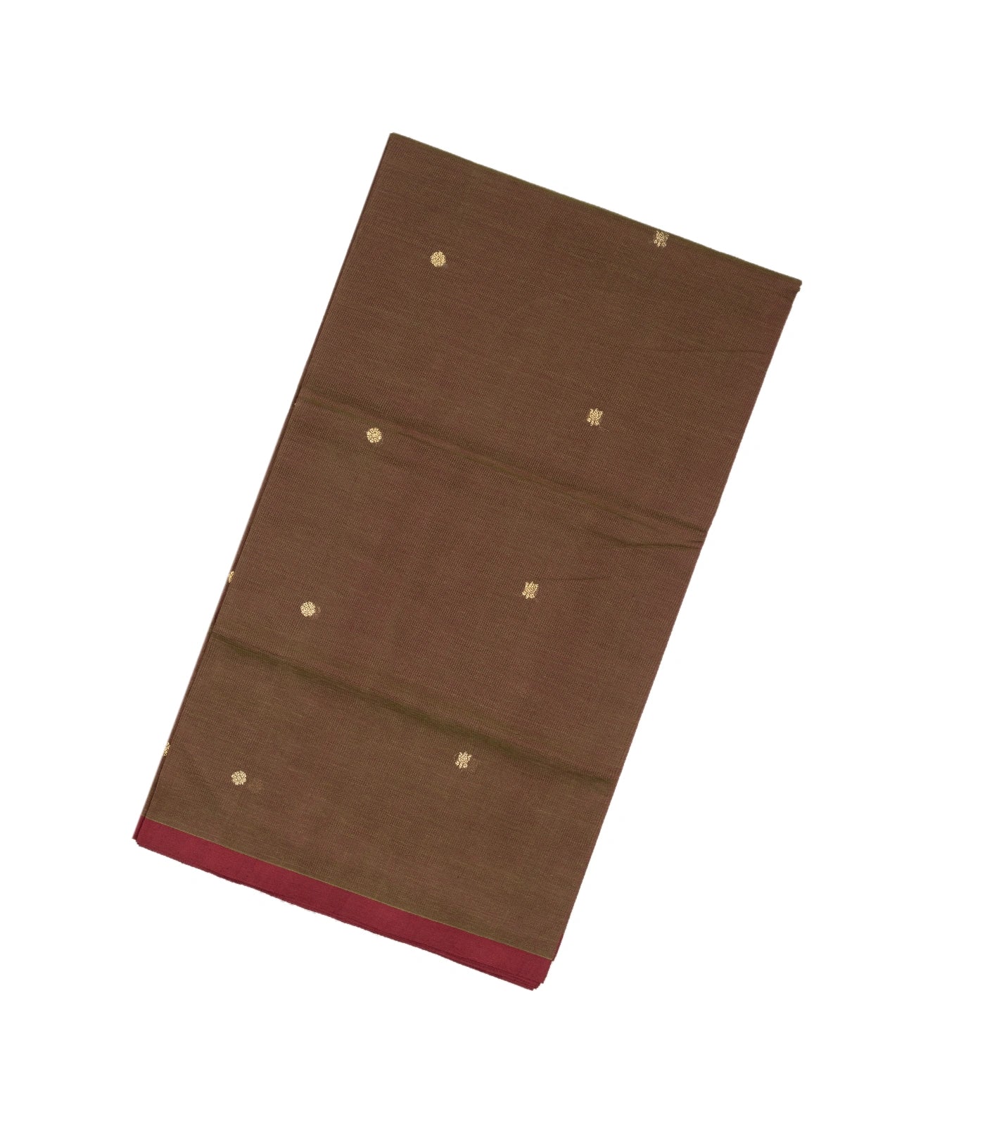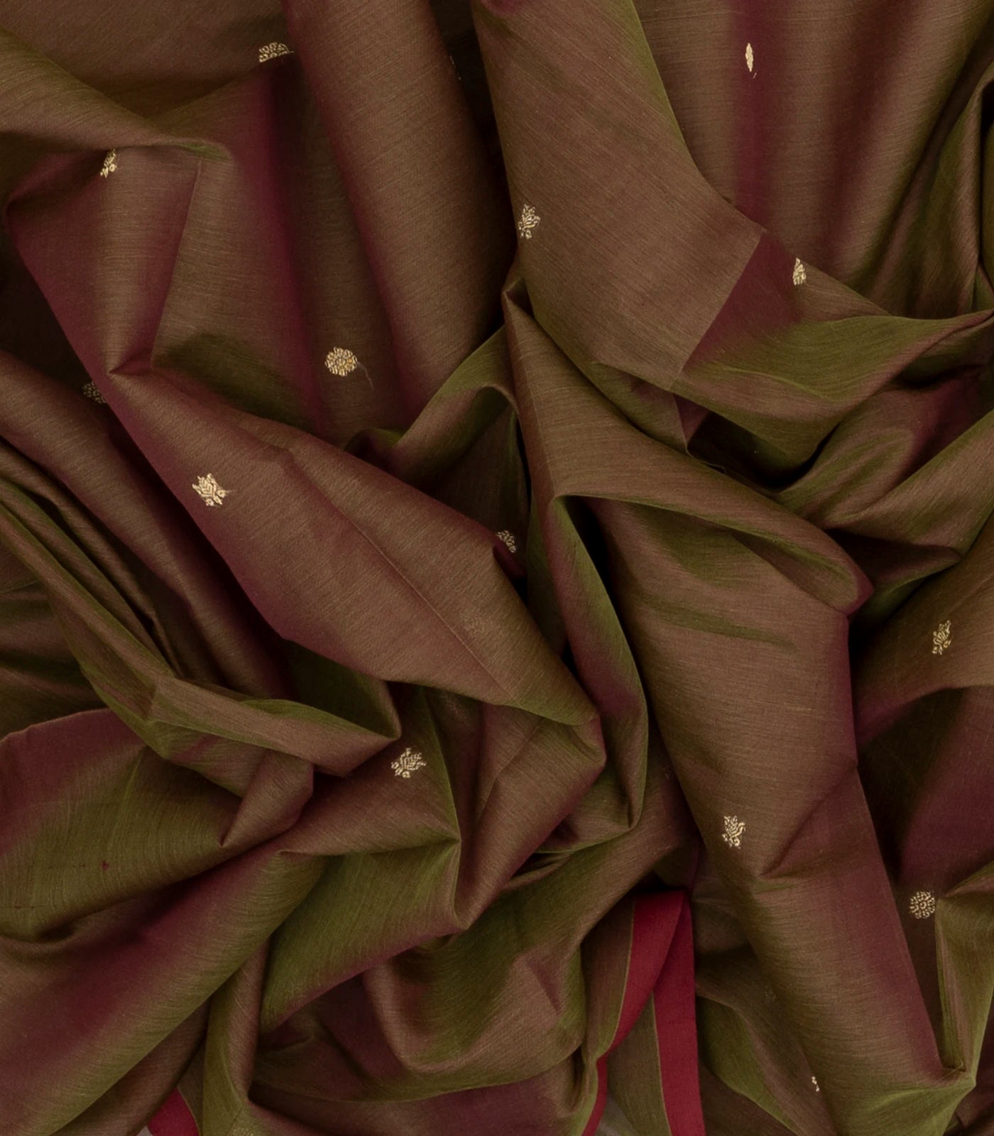 Dark Olive Handloom Silk Cotton Saree With Floral Buttas-SC3330