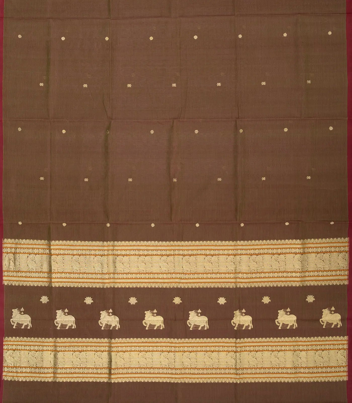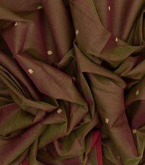 This handwoven silk cotton saree is filled with floral buttas in dark olive body along with pallu