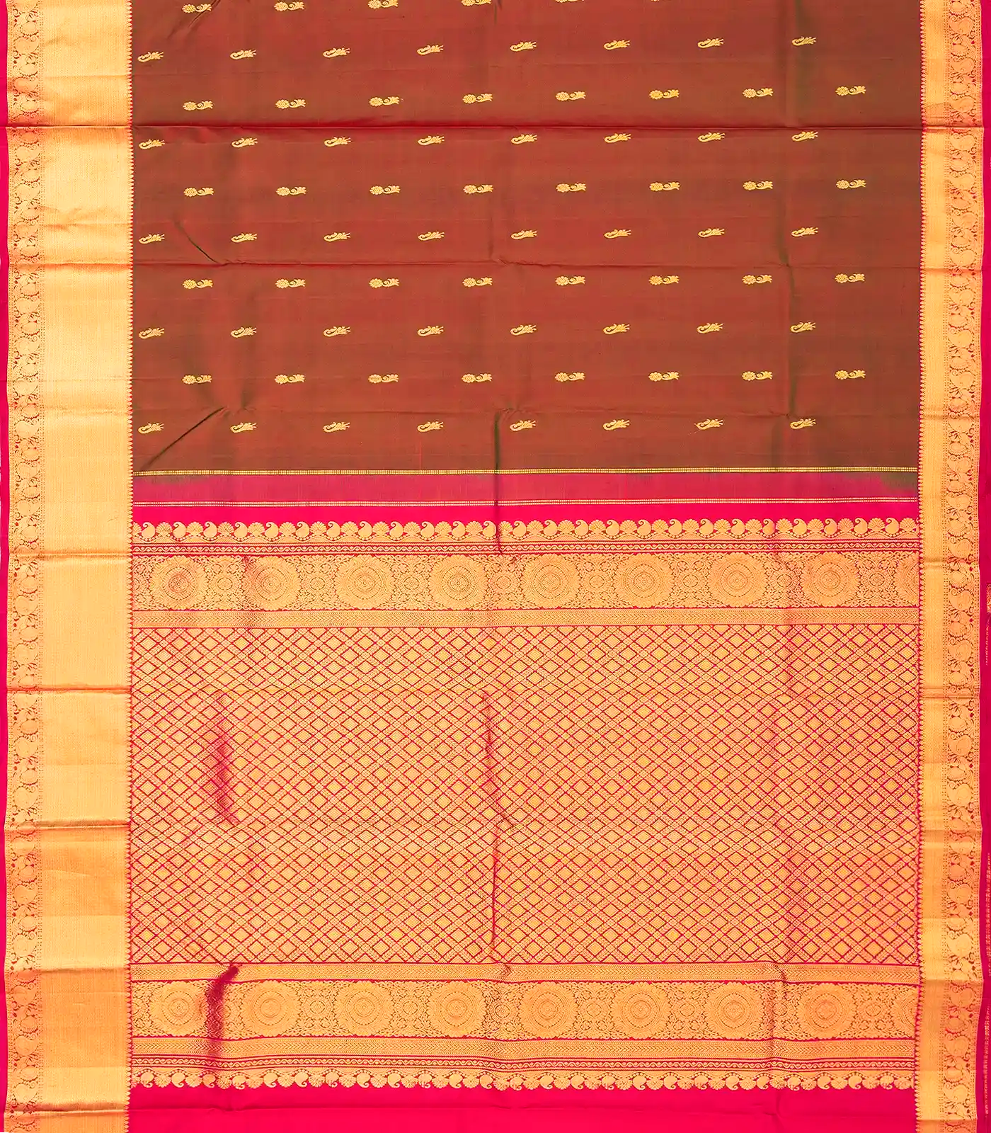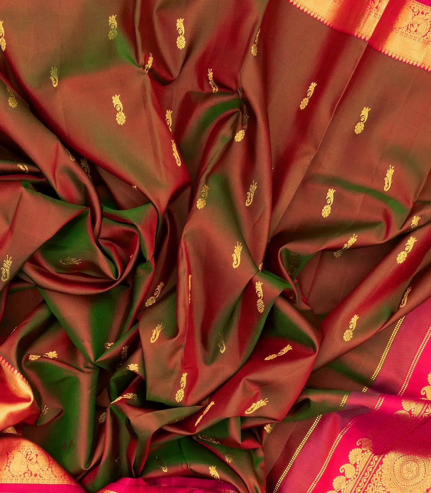 Dark Olive Woven Kanchipuram Silk Saree With Floral Buttas-KA12152