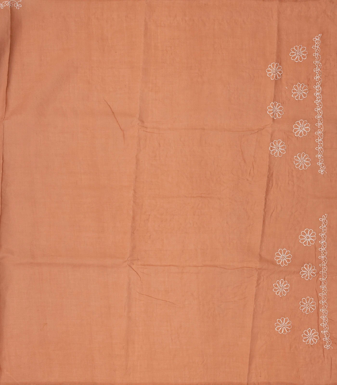 Dark Peach Chikankari Embroidered Cotton Saree With Floral Motifs