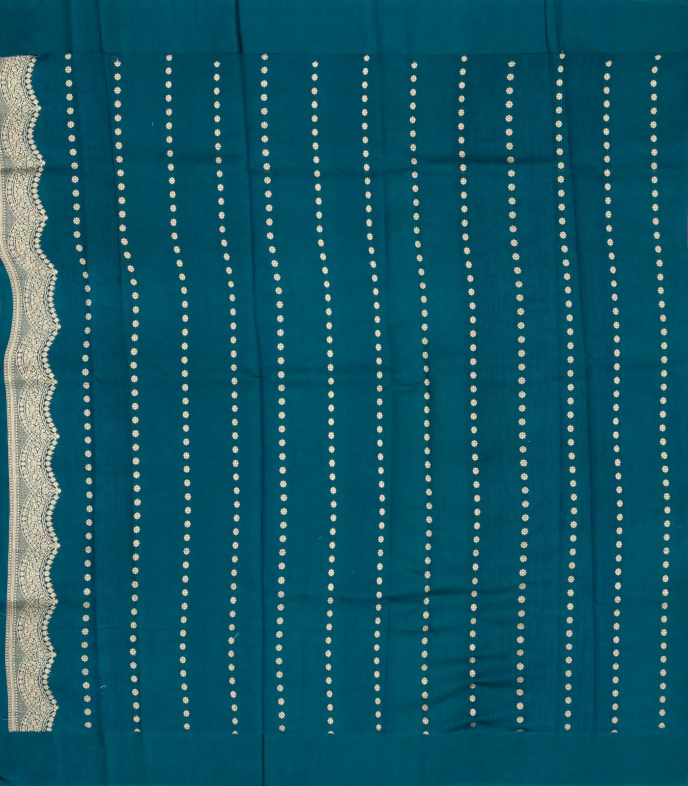 This handwoven banarasi silk saree is filled with floral zari buttas in dark peach body along with zari border and pallu also a contrast blouse