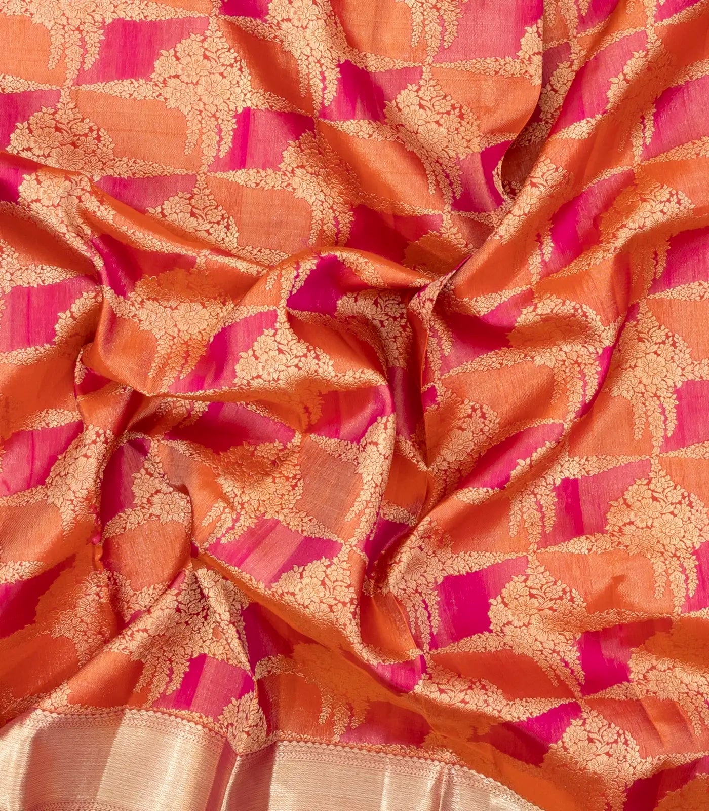 Dark Peach Handloom Kanchipuram Silk Saree With Floral Jaal Motifs-KA13530