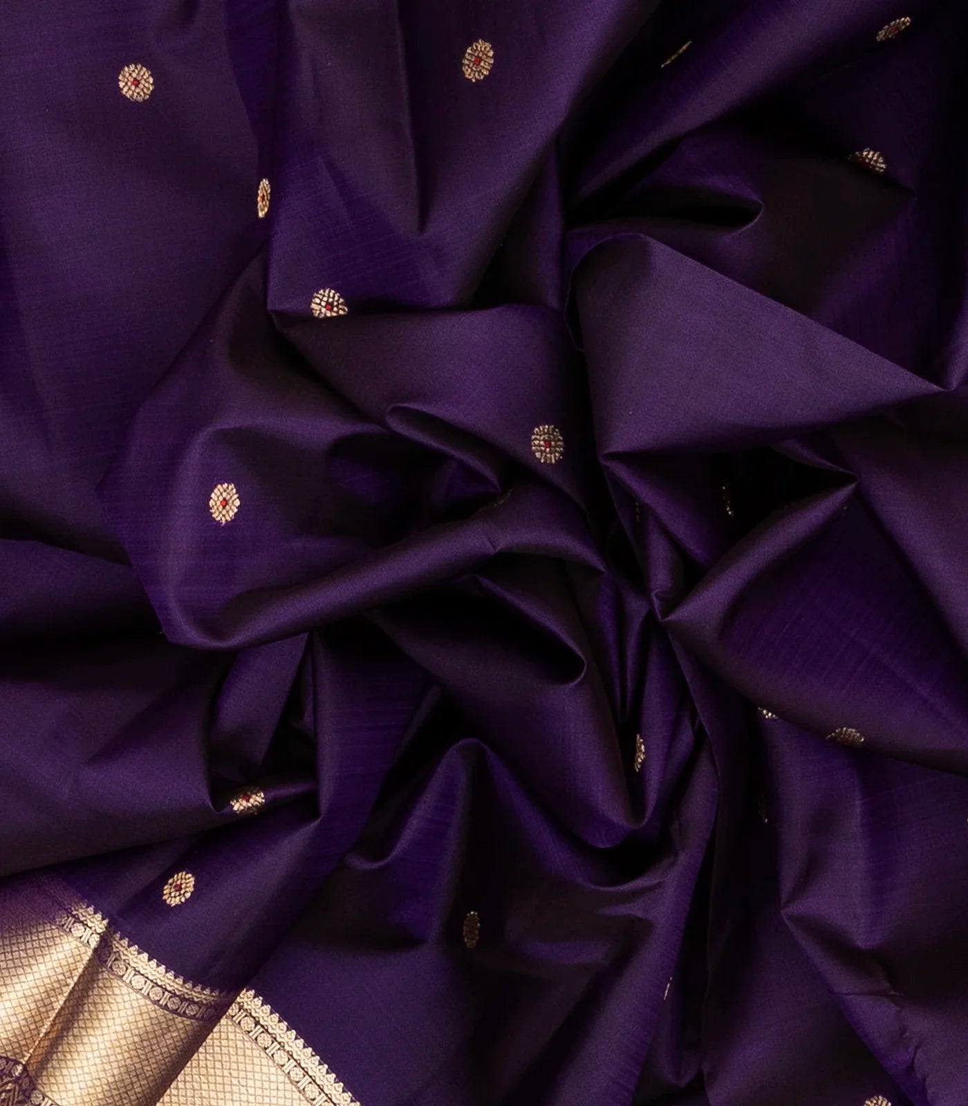Dark Purple Handloom Kanchipuram Silk Saree With Floral Buttas-KA12340