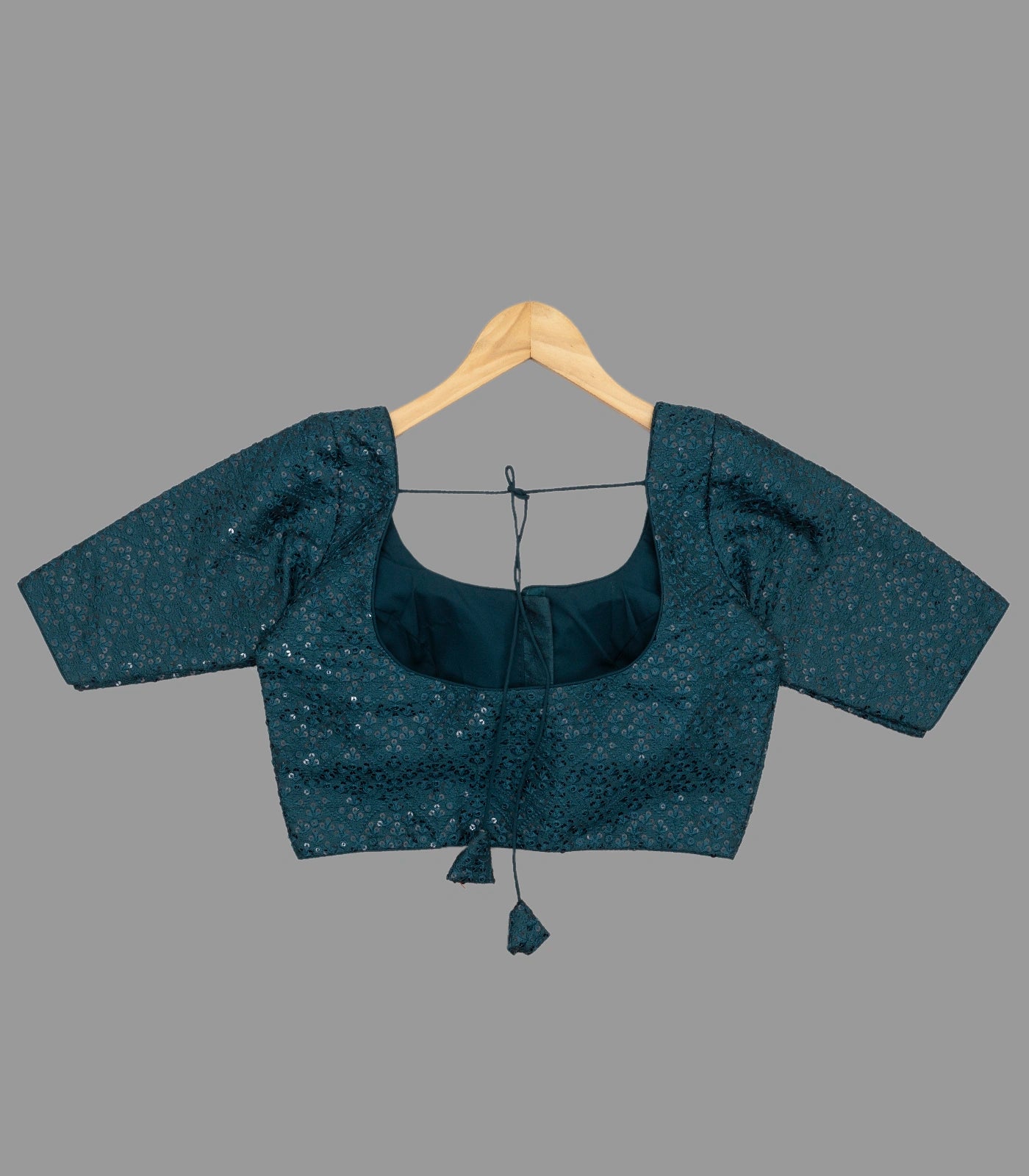 Dark Teal Green with Sequins Embroidered Festive Blouse-RB5101