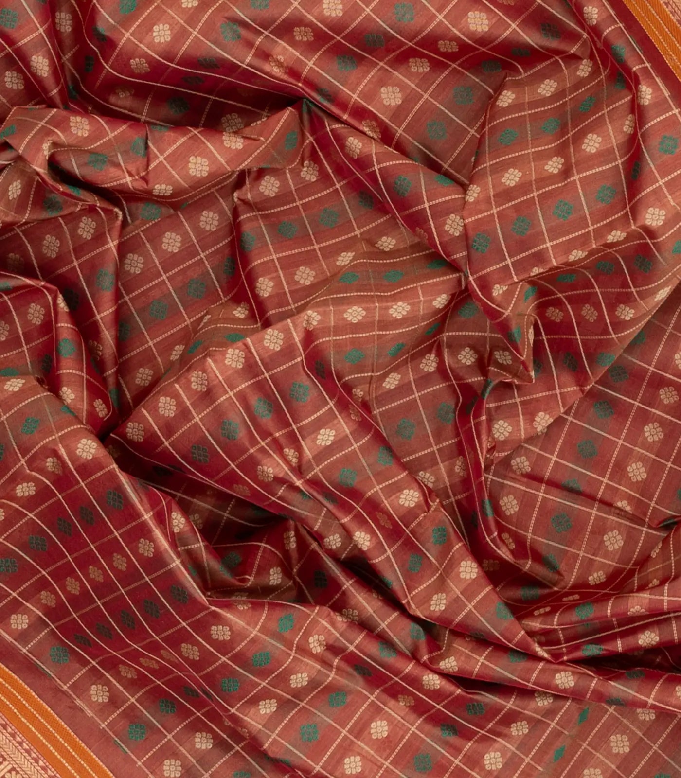 This handwoven silk cotton saree is filled with checks in dusty peach body along with border and pallu-SC4228