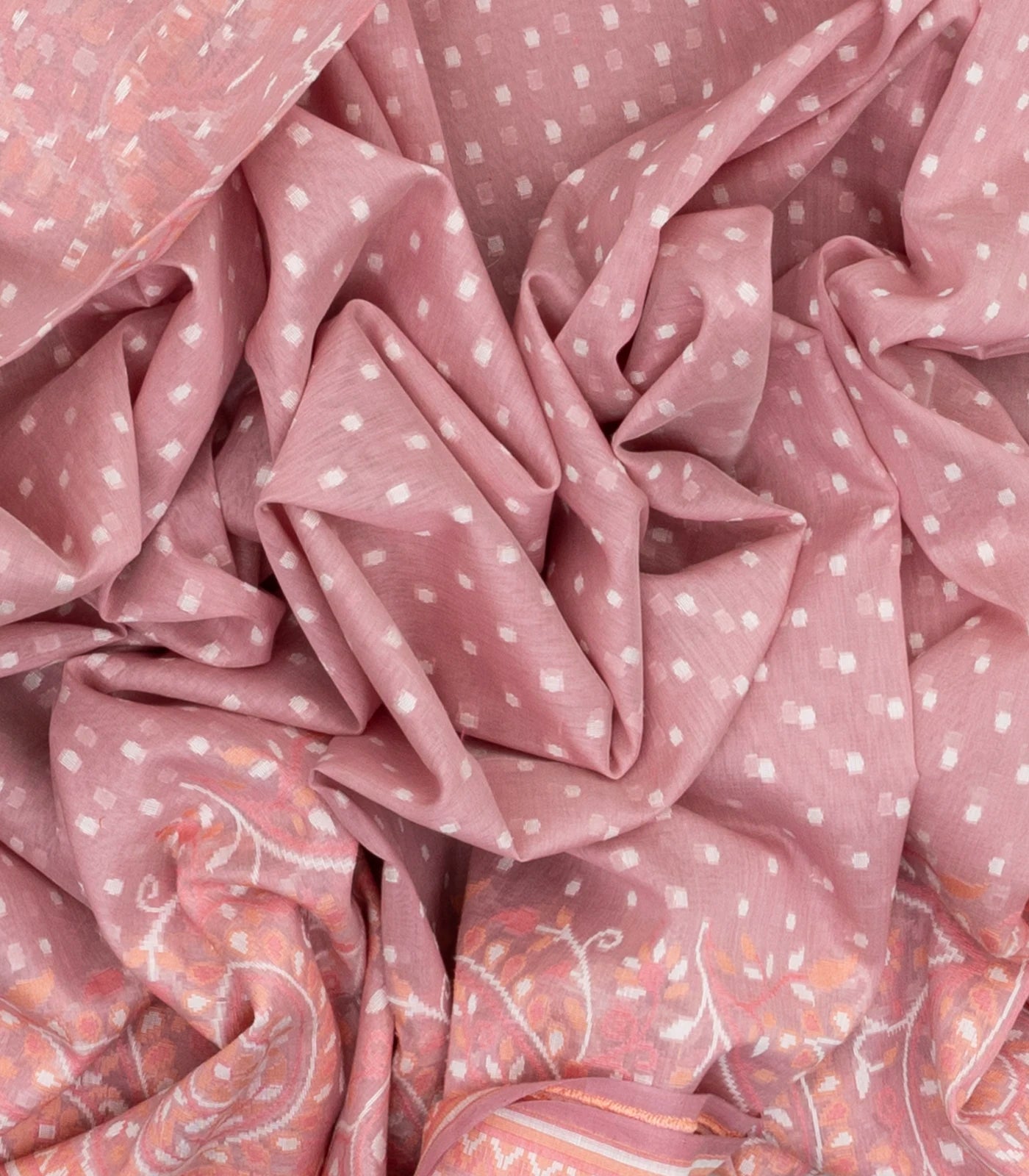 Dusty Pink Handloom Banarasi Cotton Saree With Coin Motifs-BE1336