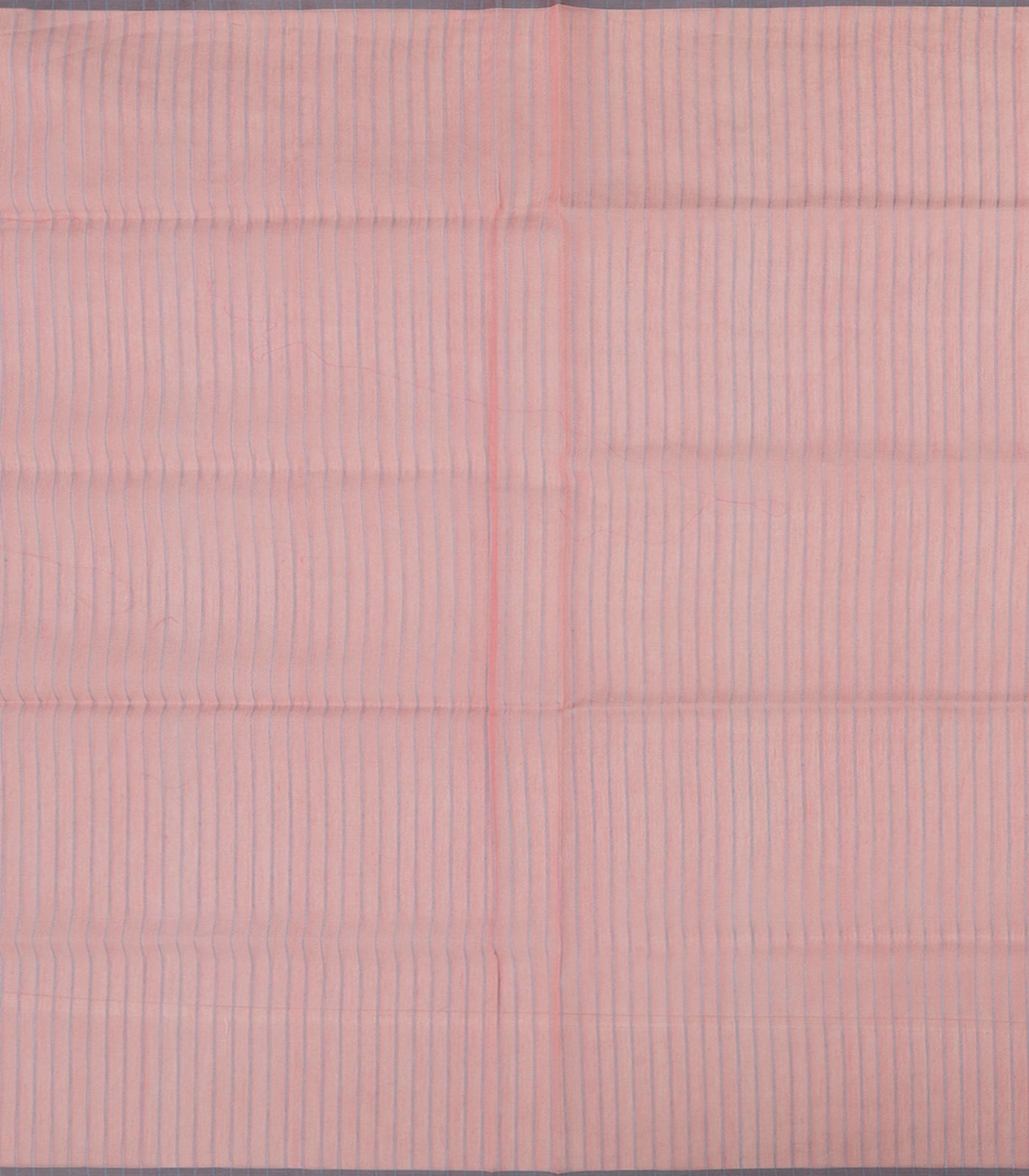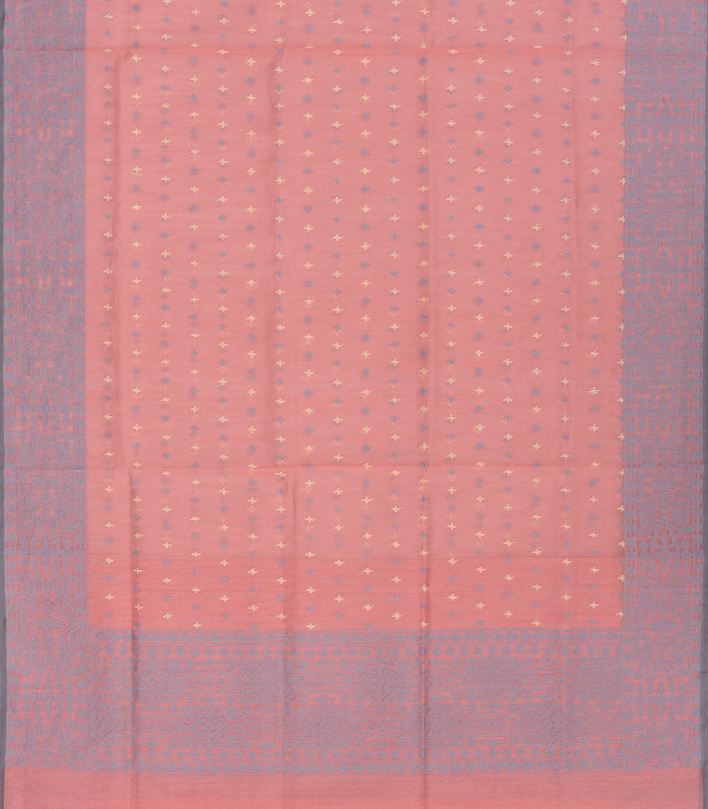 Dusty Pink Handloom Banarasi Cotton Saree With Floral Grey Border-Dusty Pink