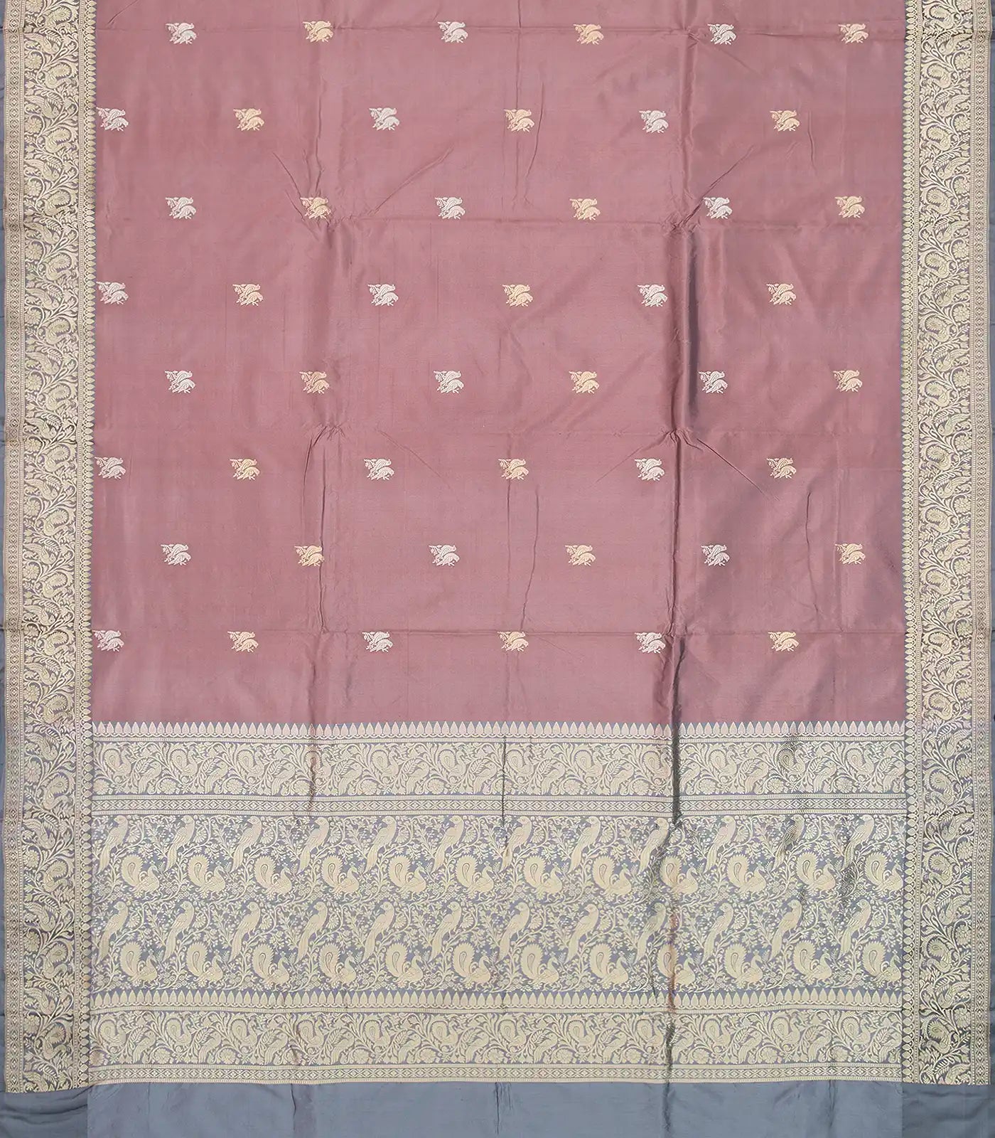 Dusty Pink Handloom Banarasi Silk Saree With Bird Buttas -BE1487