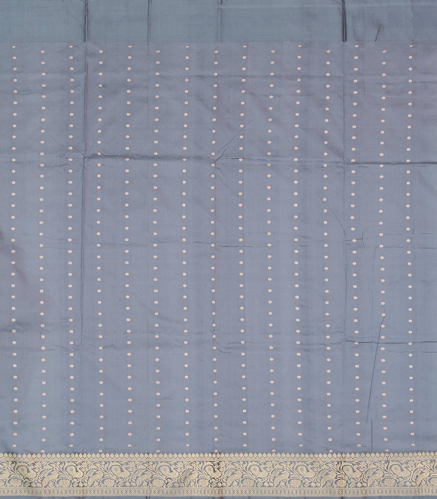 This handwoven banarasi silk saree is filled with bird buttas in dusty pink body along with contrast border and pallu