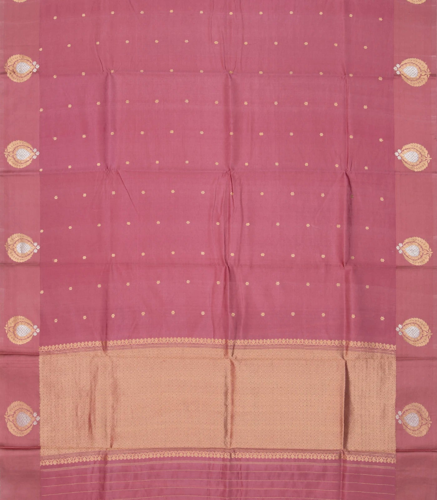 Dusty Pink Handloom Banarasi Silk Saree With Floral Buttas-BE1470