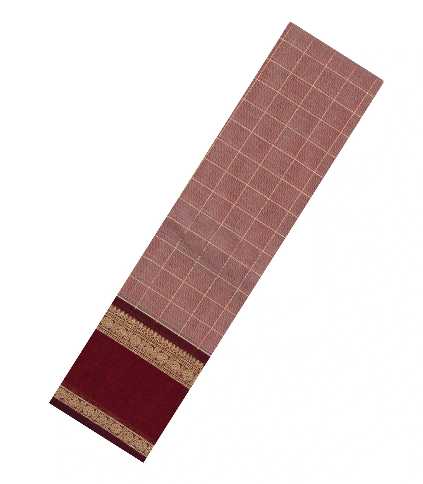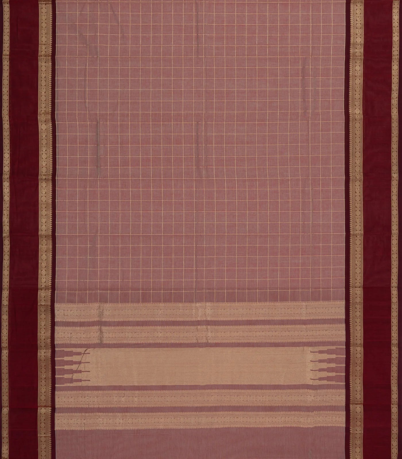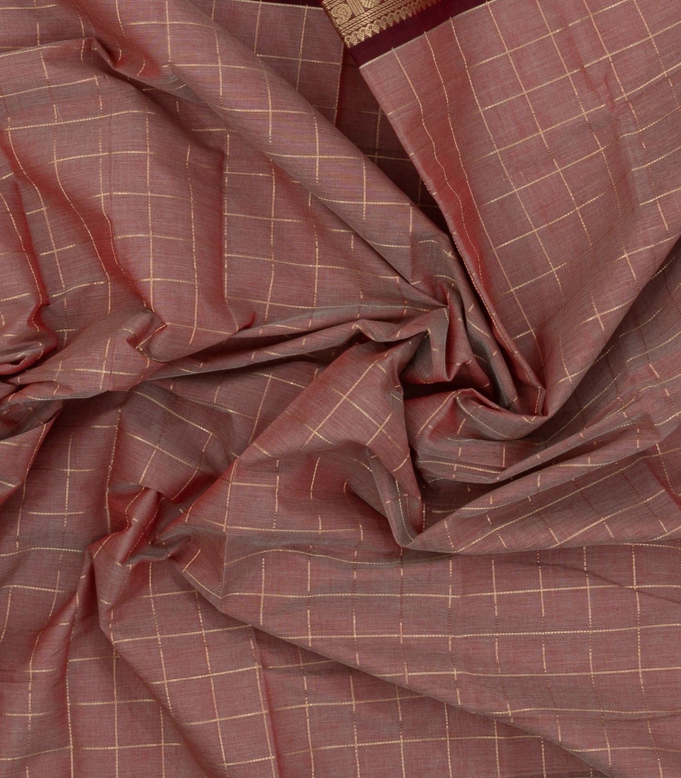 Dusty Pink Handloom Kanchi Cotton Saree With Checks & Contrast Border-KC1683