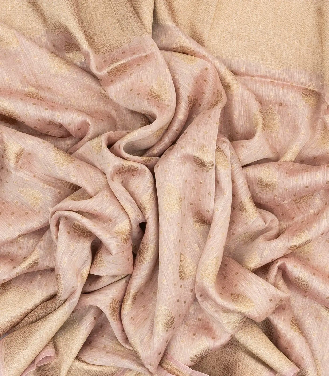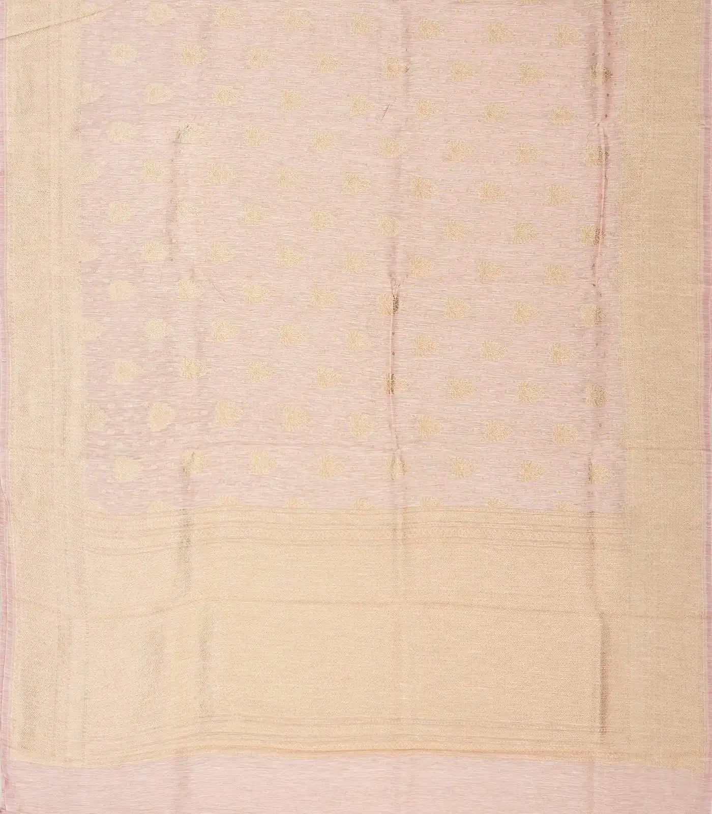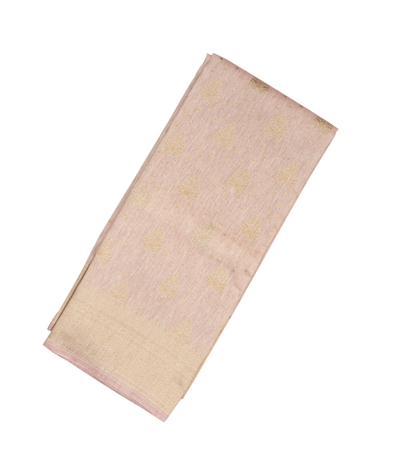 Dusty Pink Handloom Linen Saree With Floral Zari Motifs-LI0602