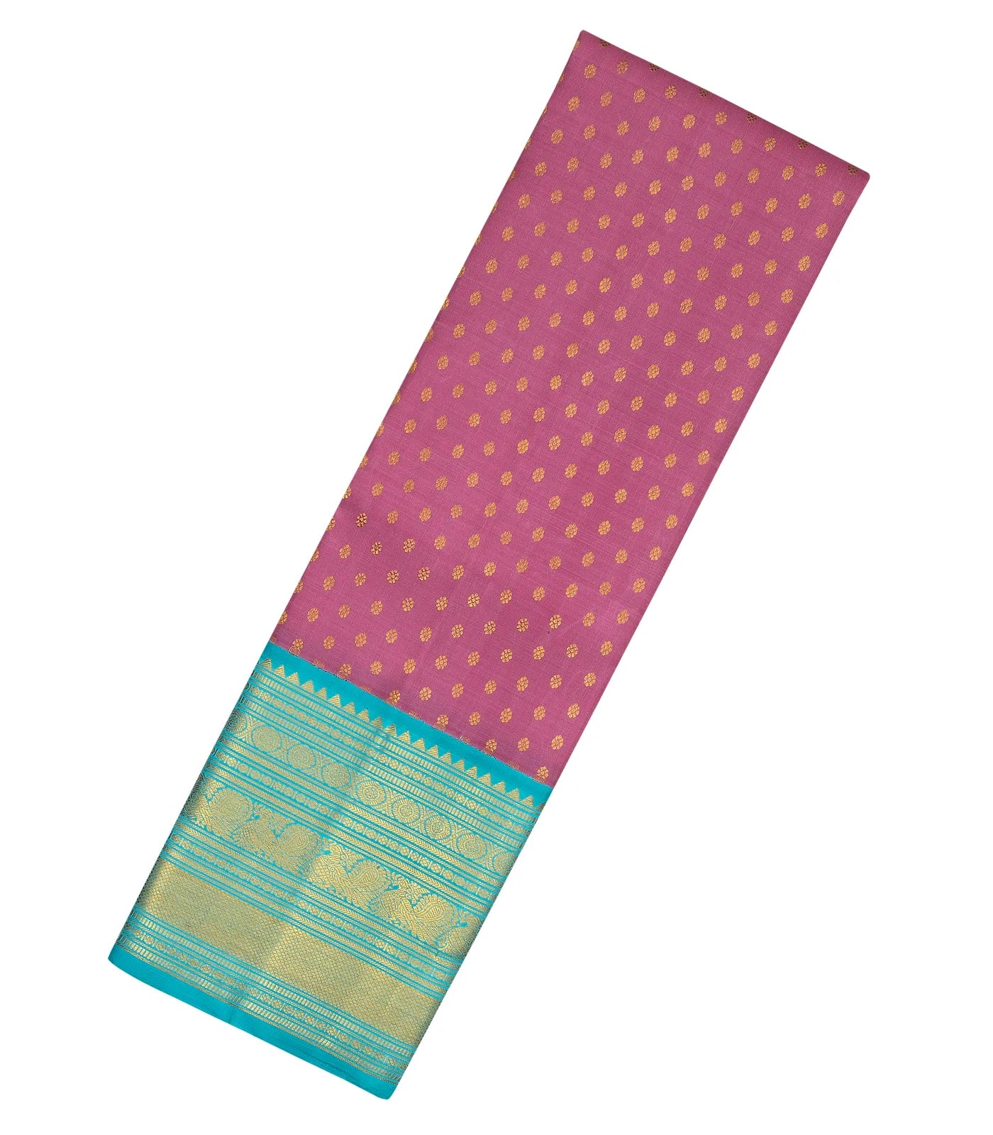 Dusty Pink Handloom Silk Korvai Kanchipuram Pattu Pavadi Material-PM2075