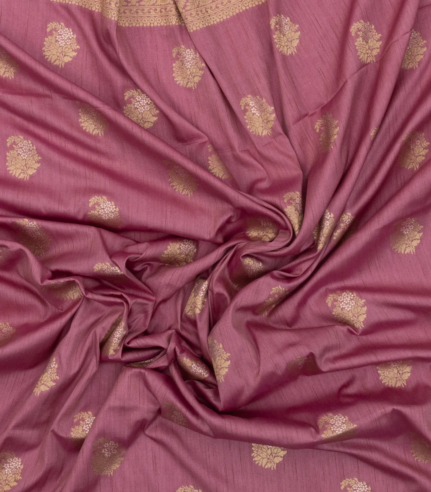 Dusty Pink Woven Art Dupion Saree With Floral Motifs-BL4929