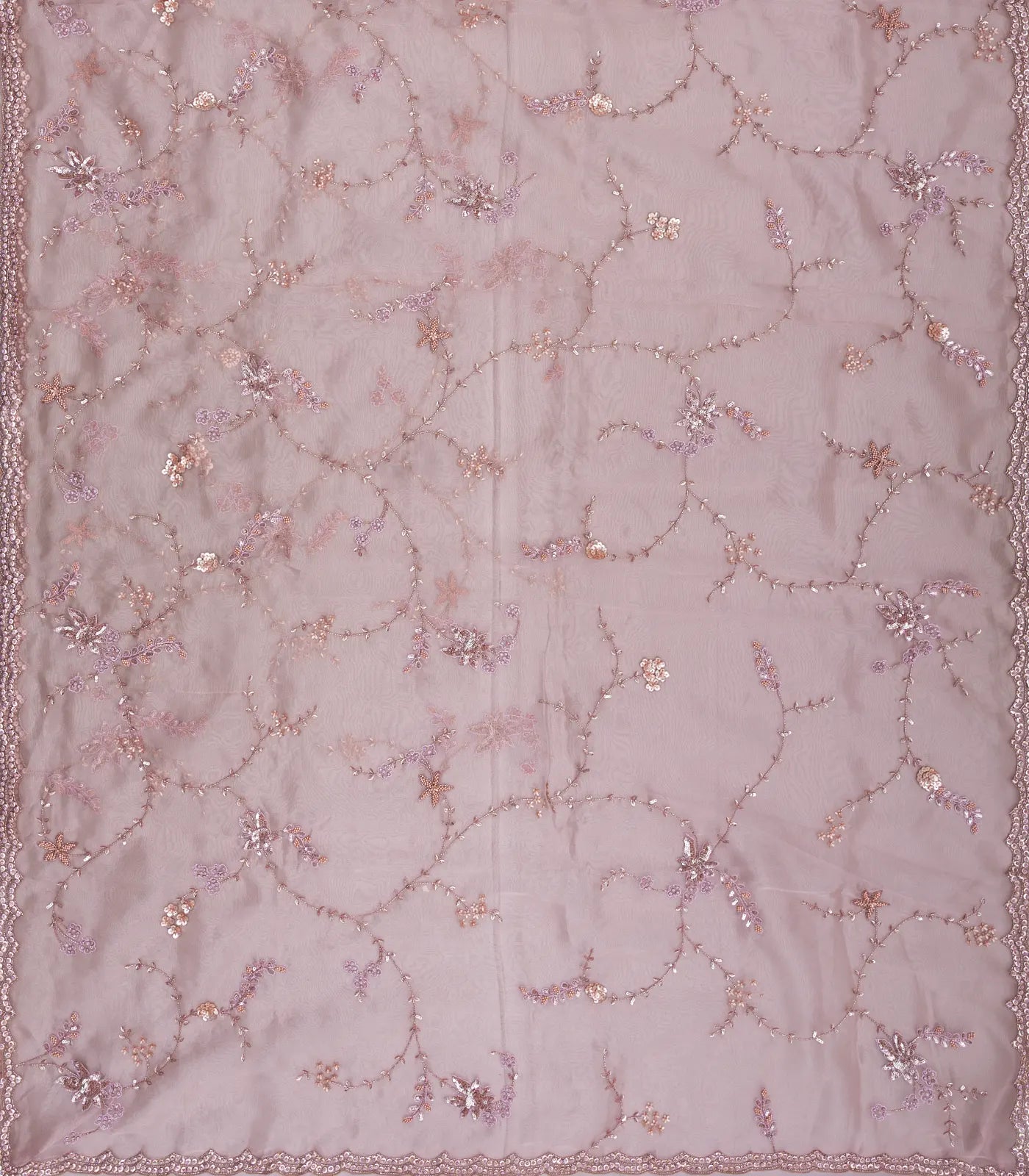 Dusty Pink Woven Organza Saree With Embroidered Floral Motifs-EN1861