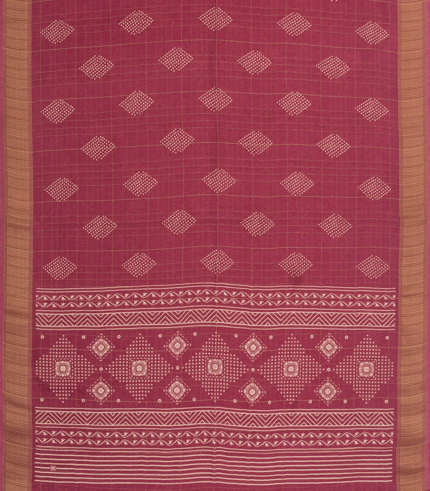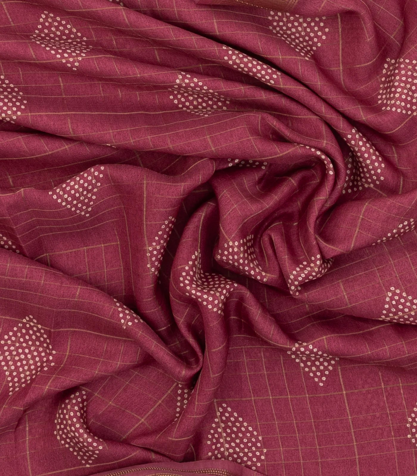 This woven blended synthetic chiffon silk saree is filled with printed diamond motifs in dusty pink body along with border and pallu