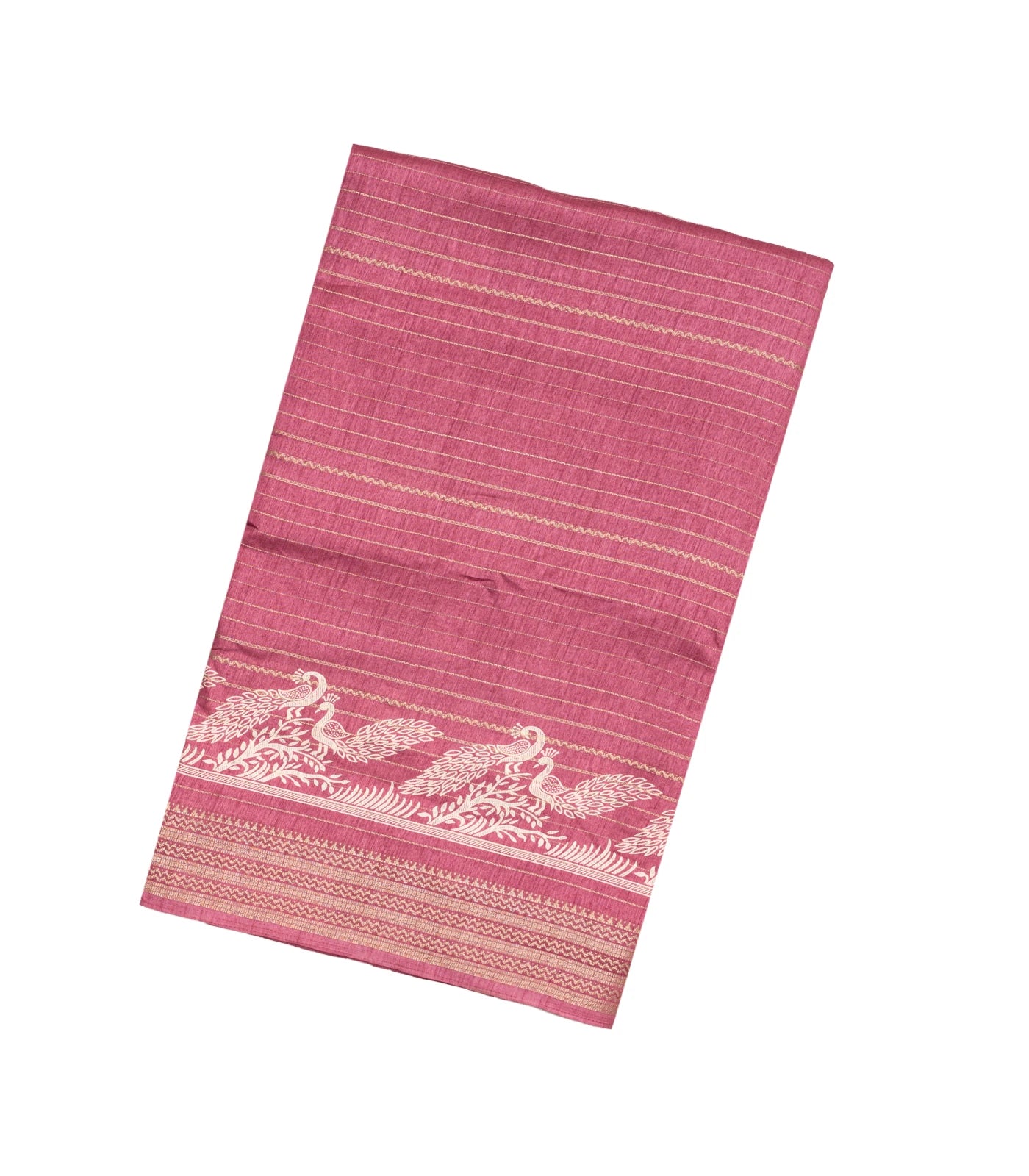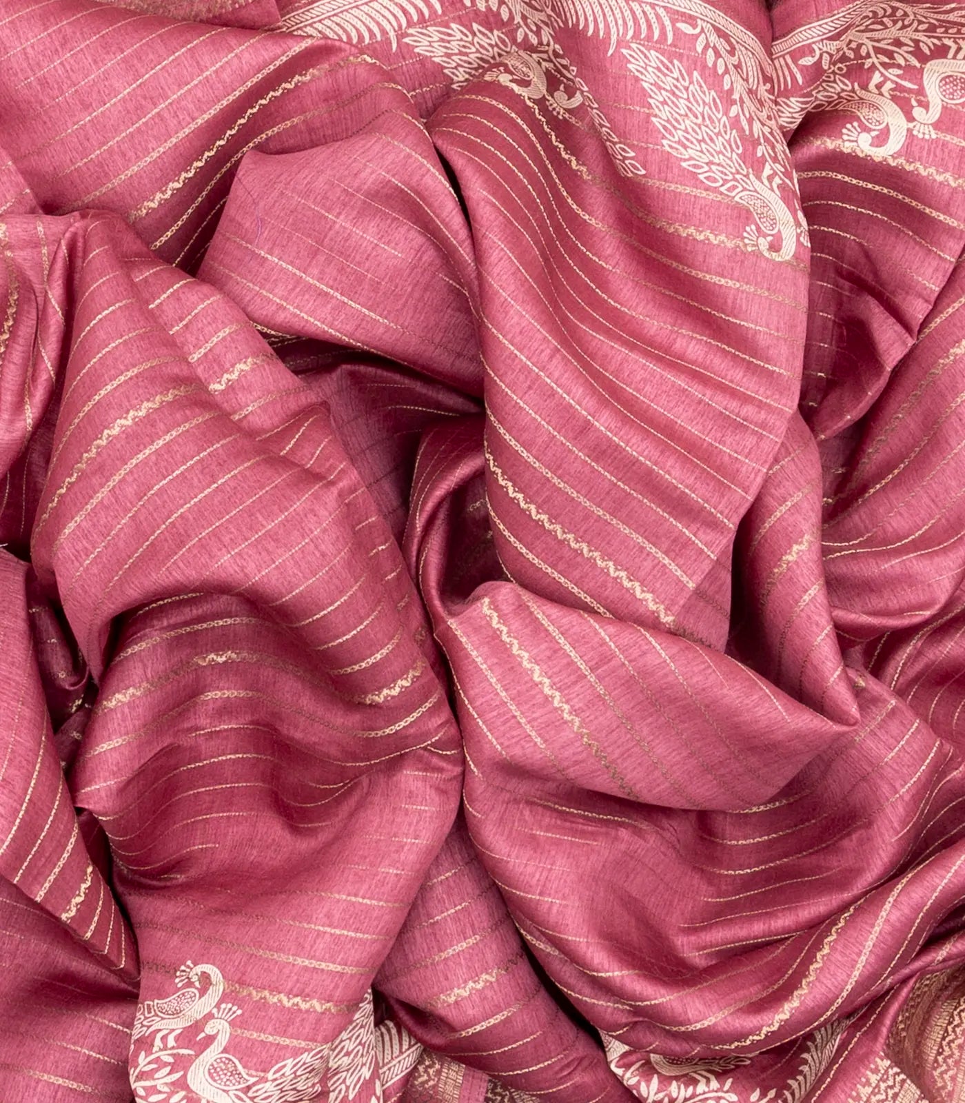 Dusty Pink Woven Synthetic Dola Saree With Stripes & Printed Bird Motifs-BL4499