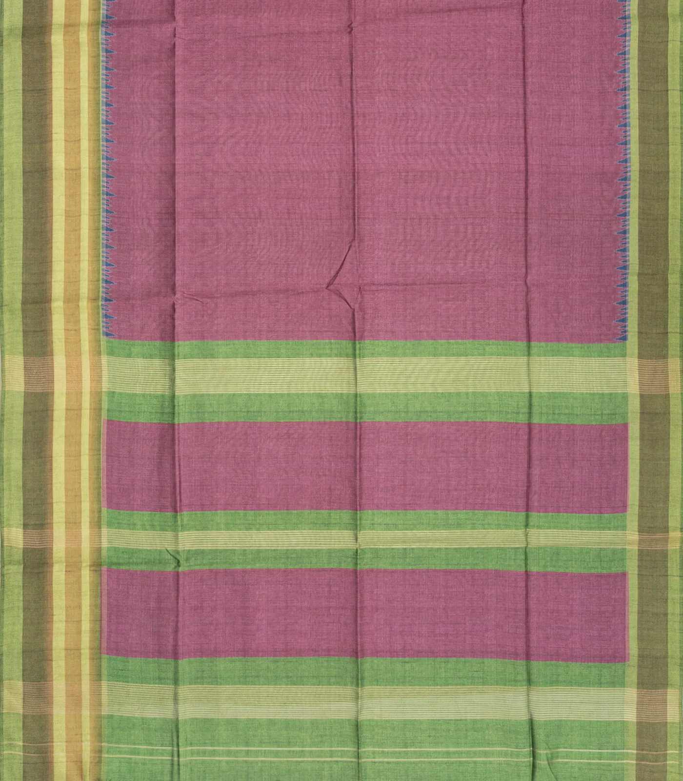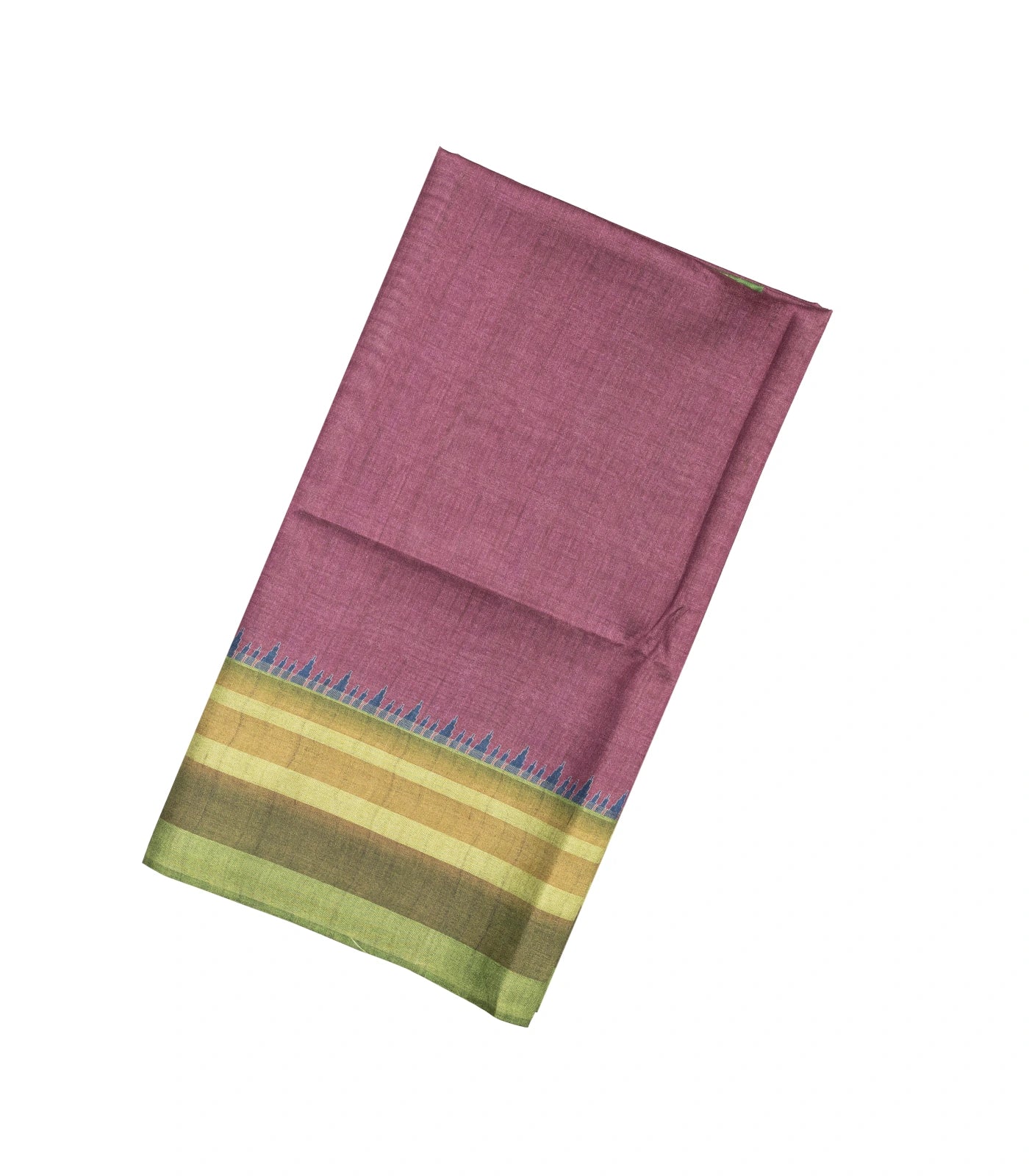 This woven synthetic dupion saree is filled with plain dusty pink body along with contrast border and pallu