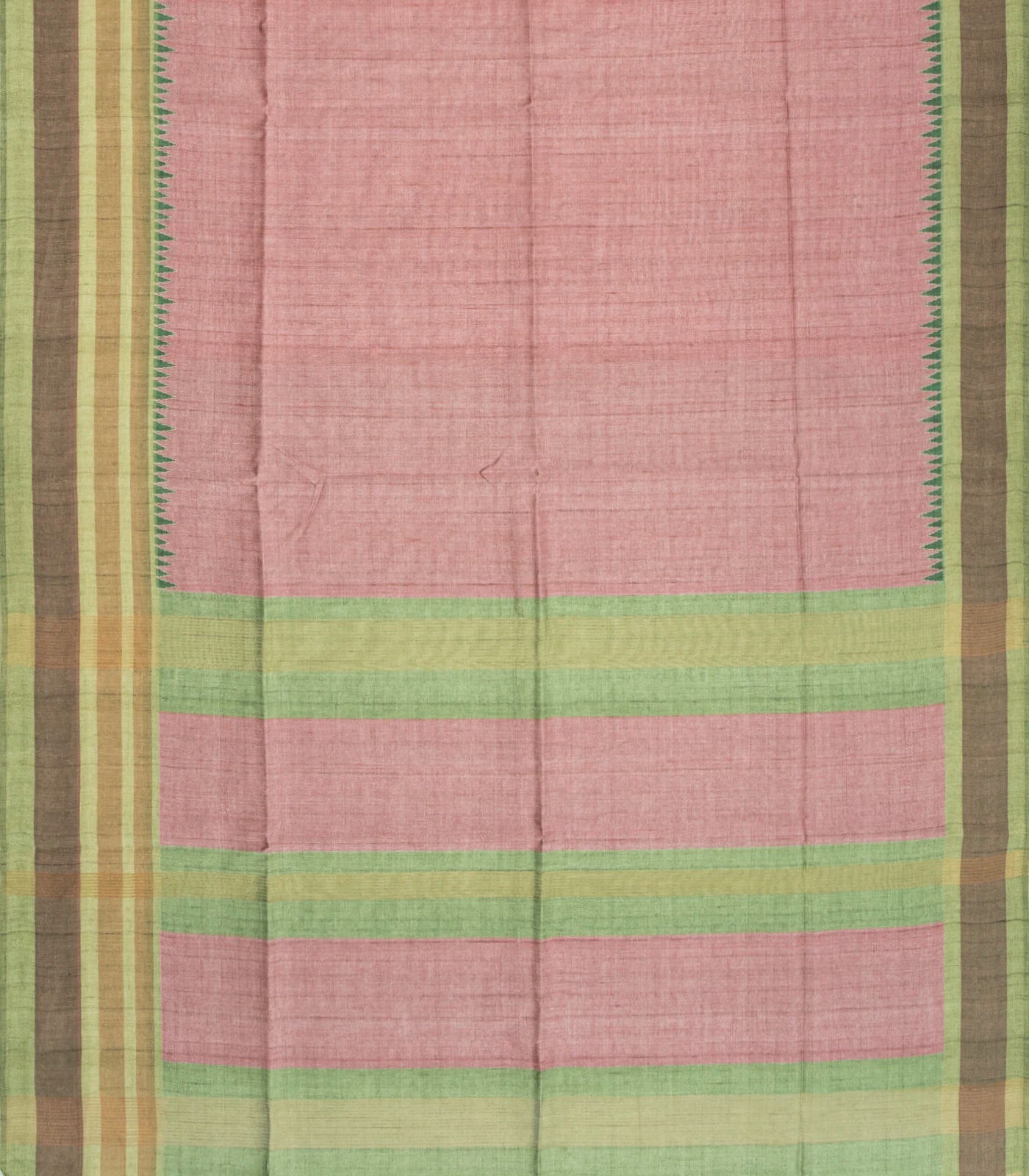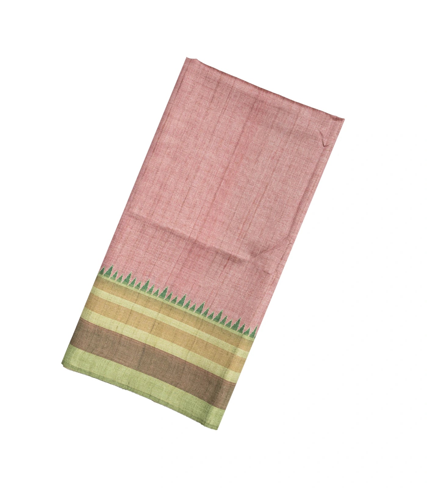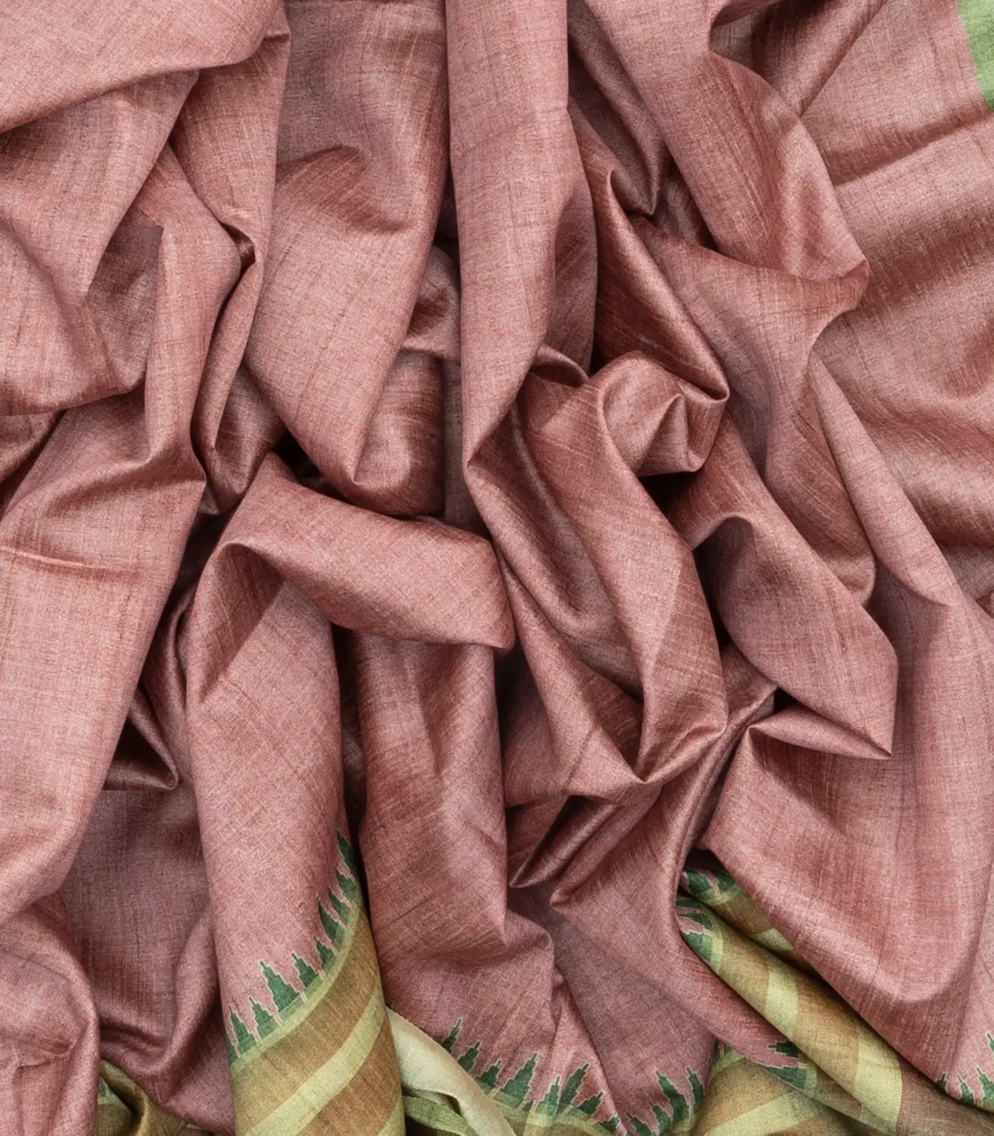 Dusty Pink Woven Synthetic Dupion Saree With Green Border-BL4339