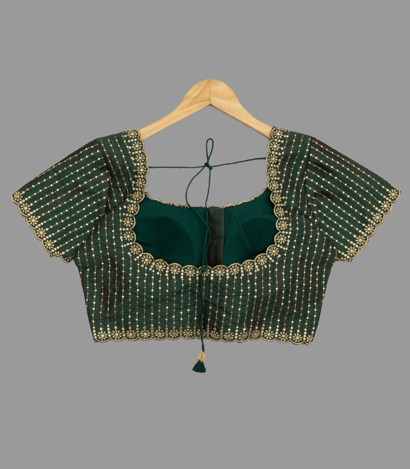 Emerald Green Gold Embroidered Festive Blouse-RB5124