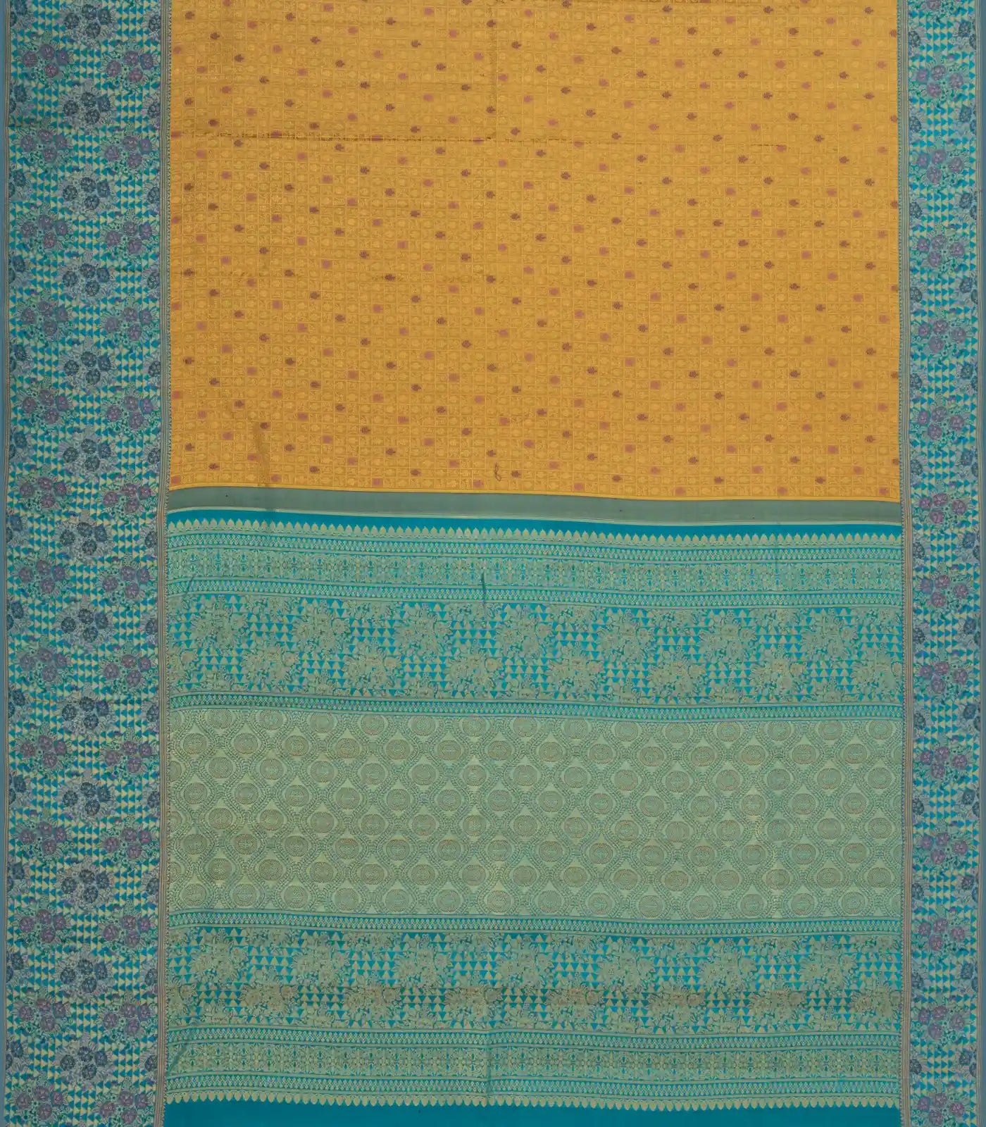 Gold Handloom Kanchipuram Silk Saree With Meena Floral Motifs-KA14754