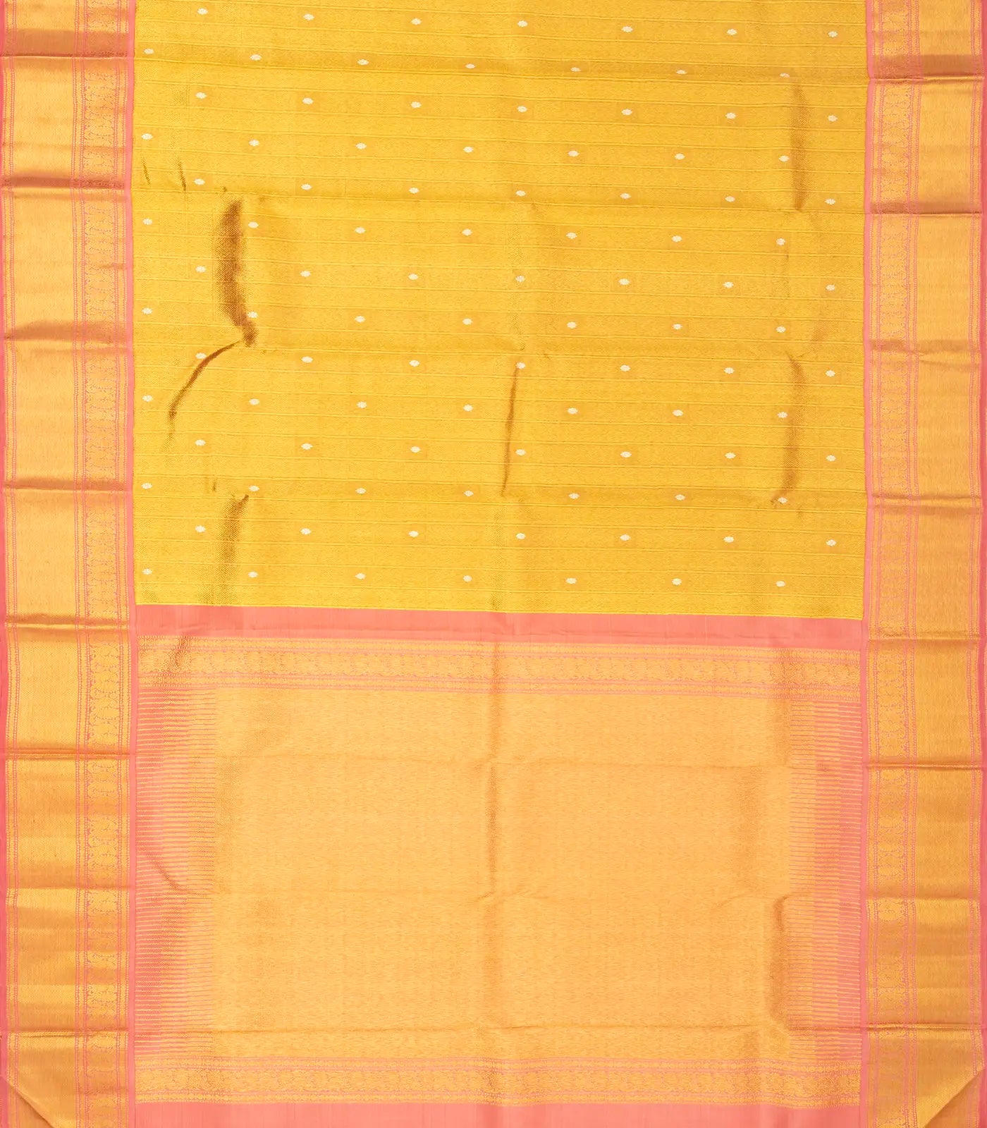 Gold Handloom Korvai Tissue Kanchipuram Silk Saree With Checks