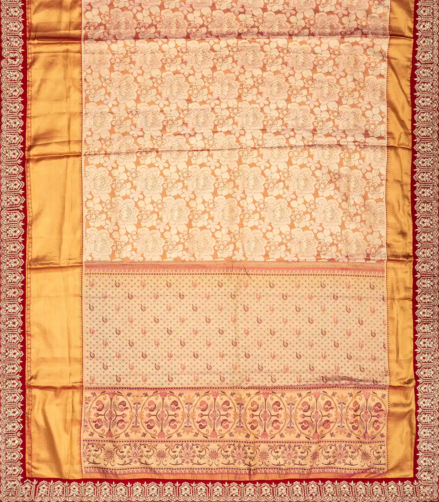 Gold Handloom Tissue Silk Saree With Floral Motifs & Hand Embroidered Selvage-EN1723