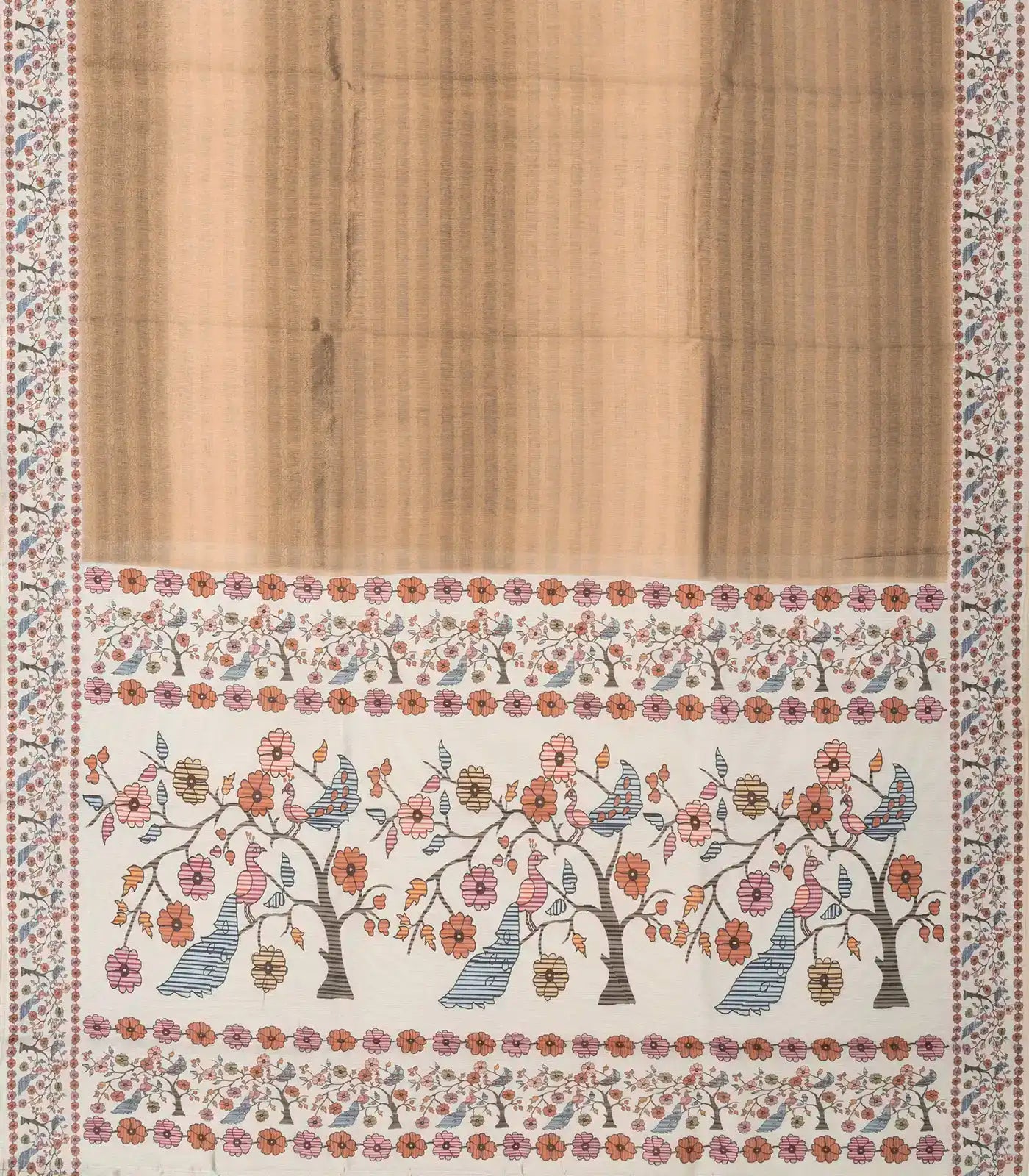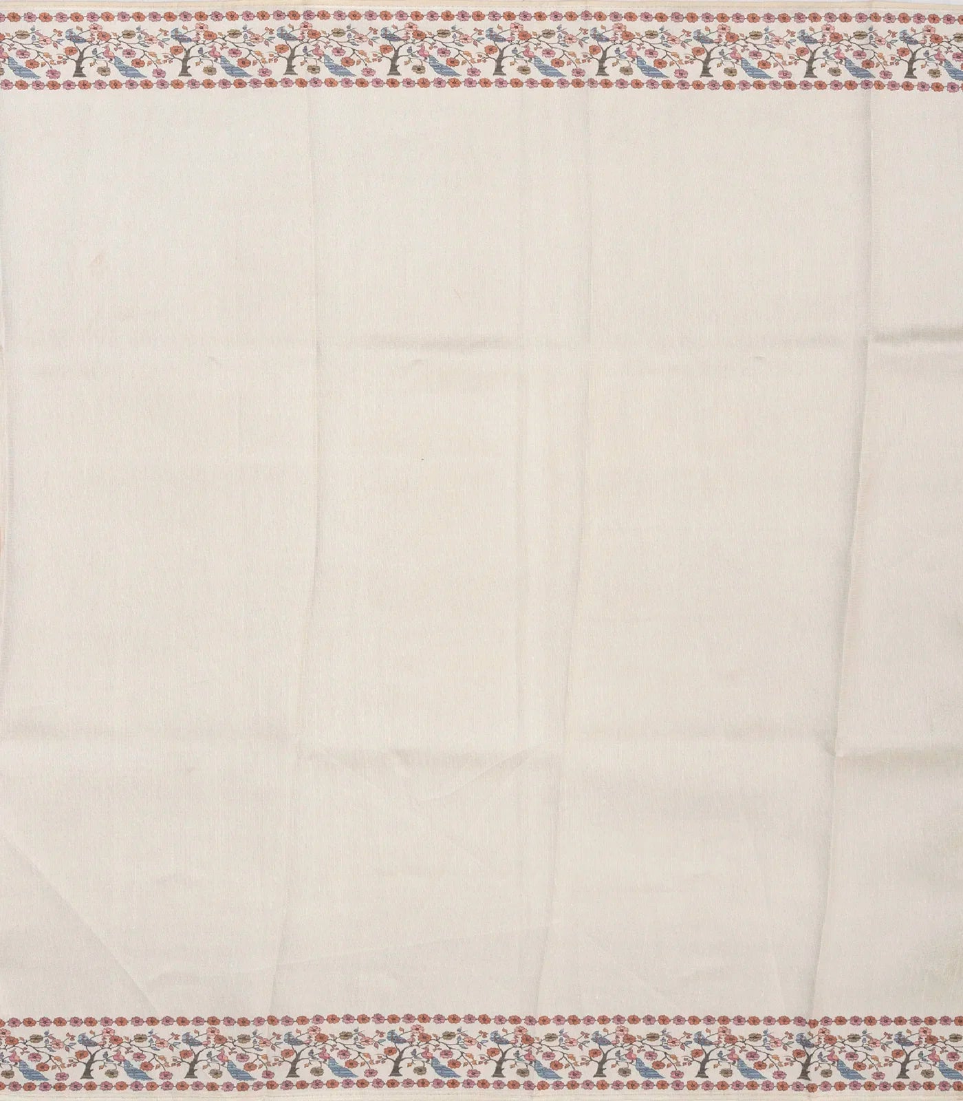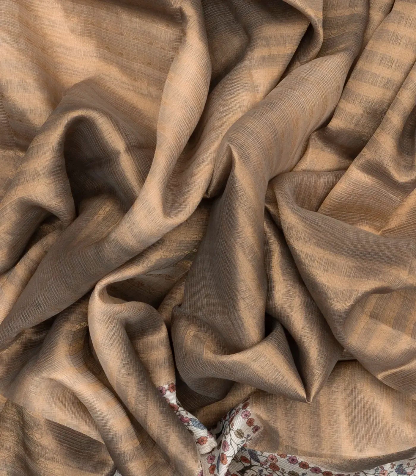 This woven art tissue saree is filled with animal motifs in gold body along with contrast border and pallu