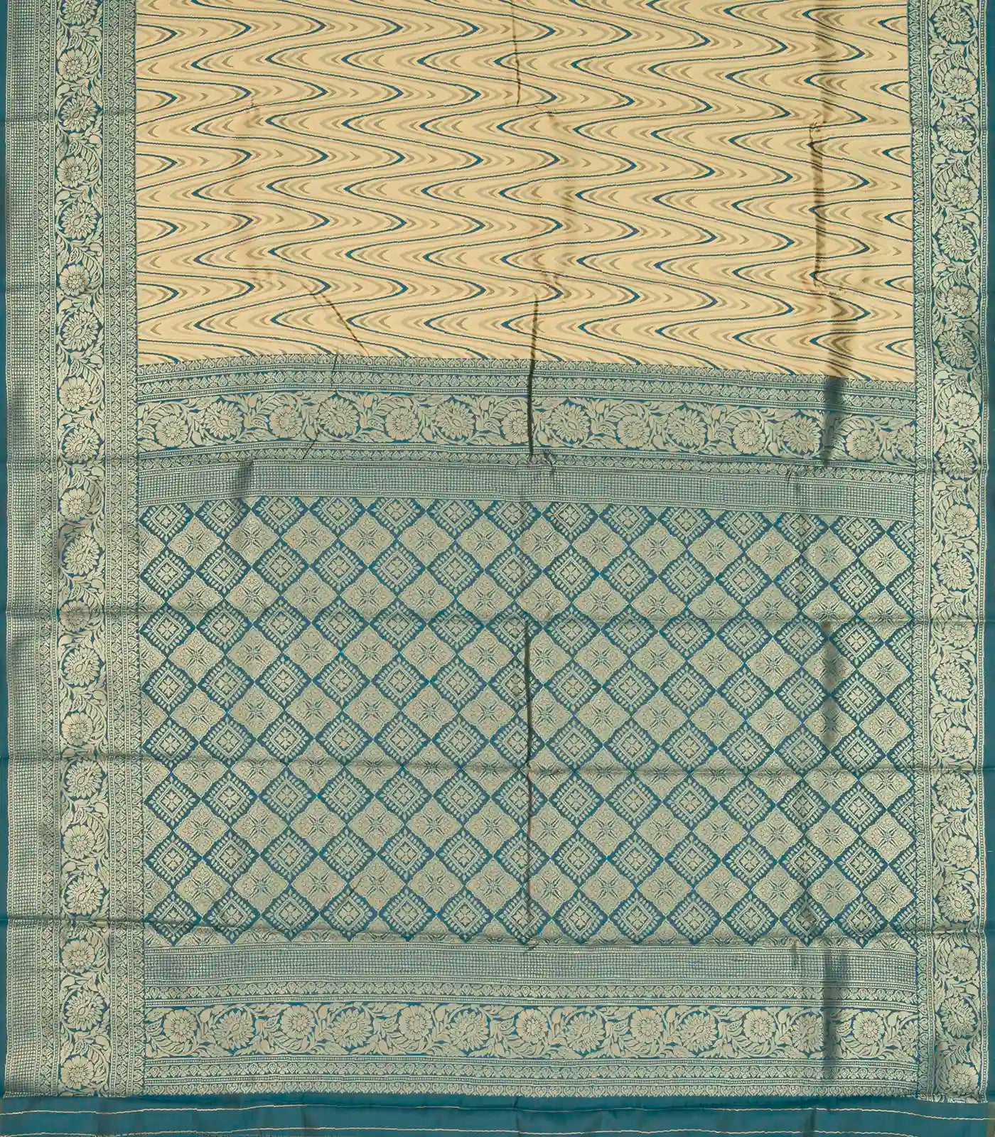 Gold Woven Blended Lichi Silk Saree With Waves Motifs-BL3895