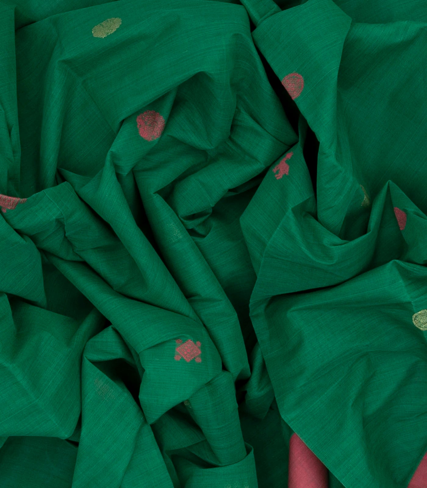 This handwoven kanchi cotton saree is filled with elephant motifs in green body along with contrast border and pallu