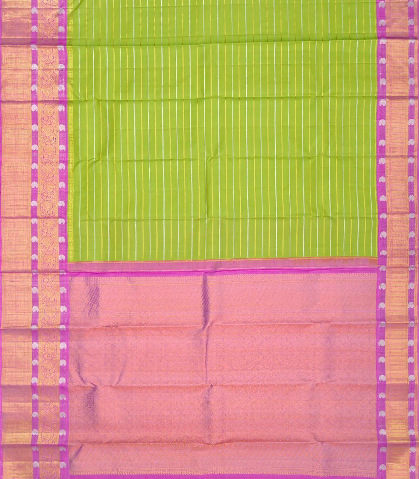 Green Handloom Kanchipuram Silk Saree With Beldari Zari stripes