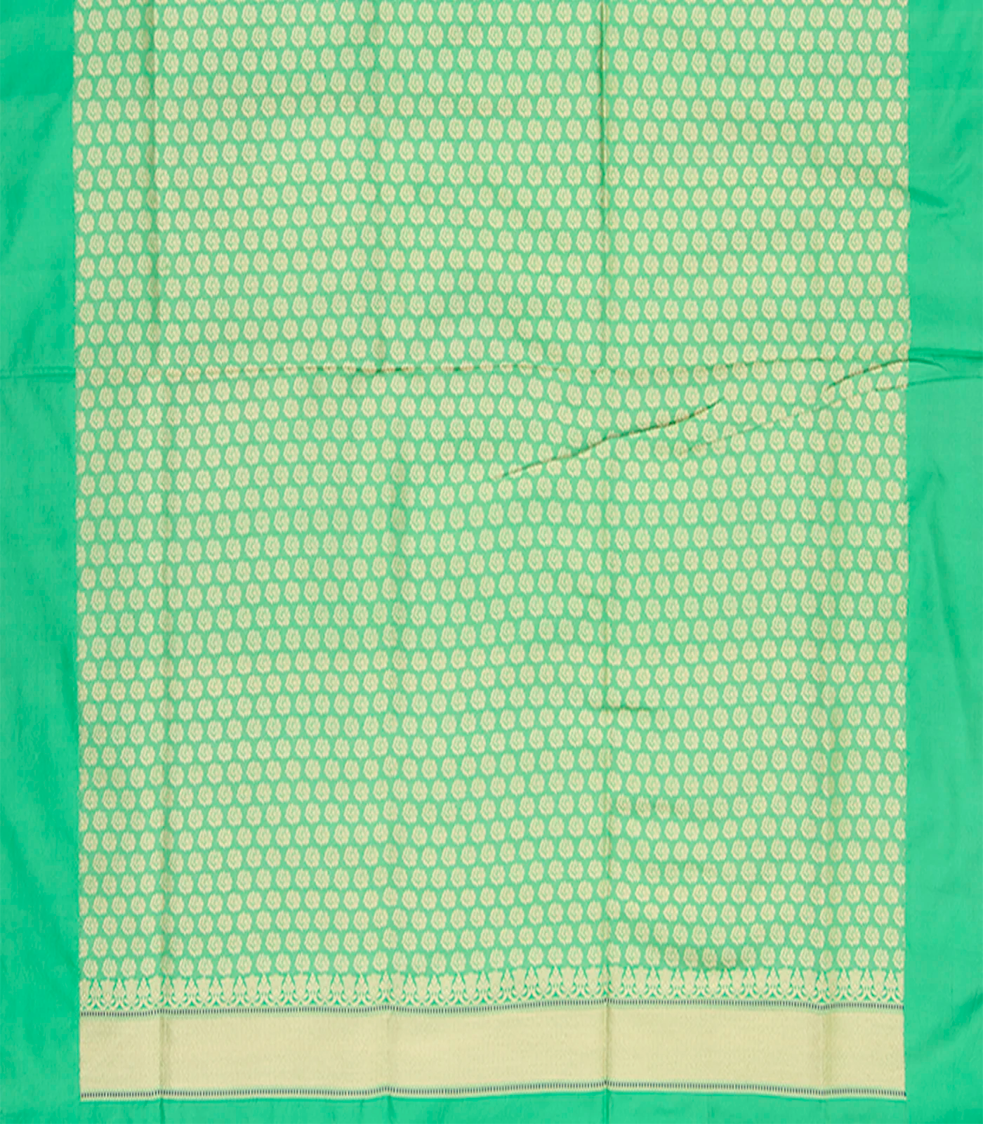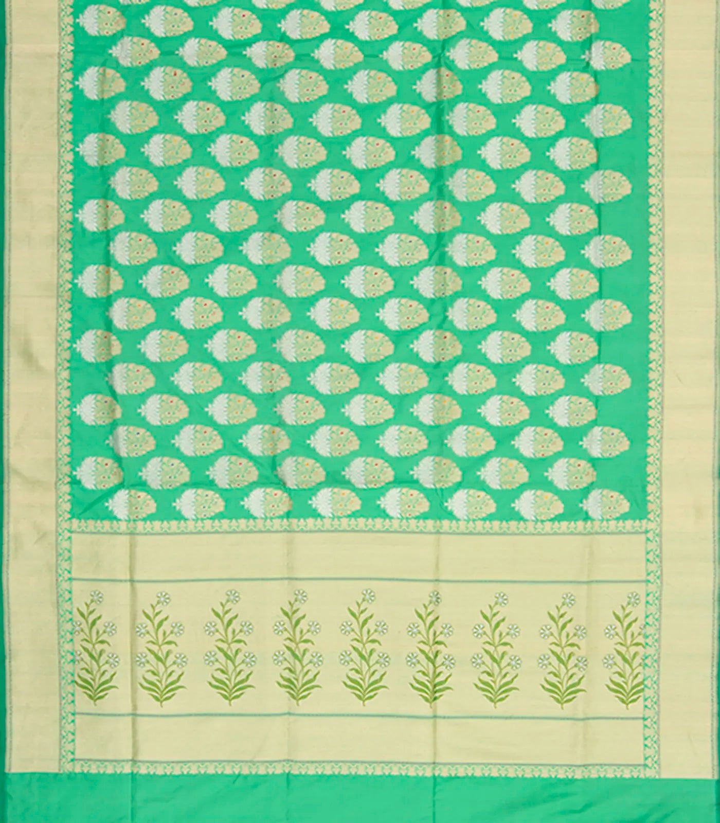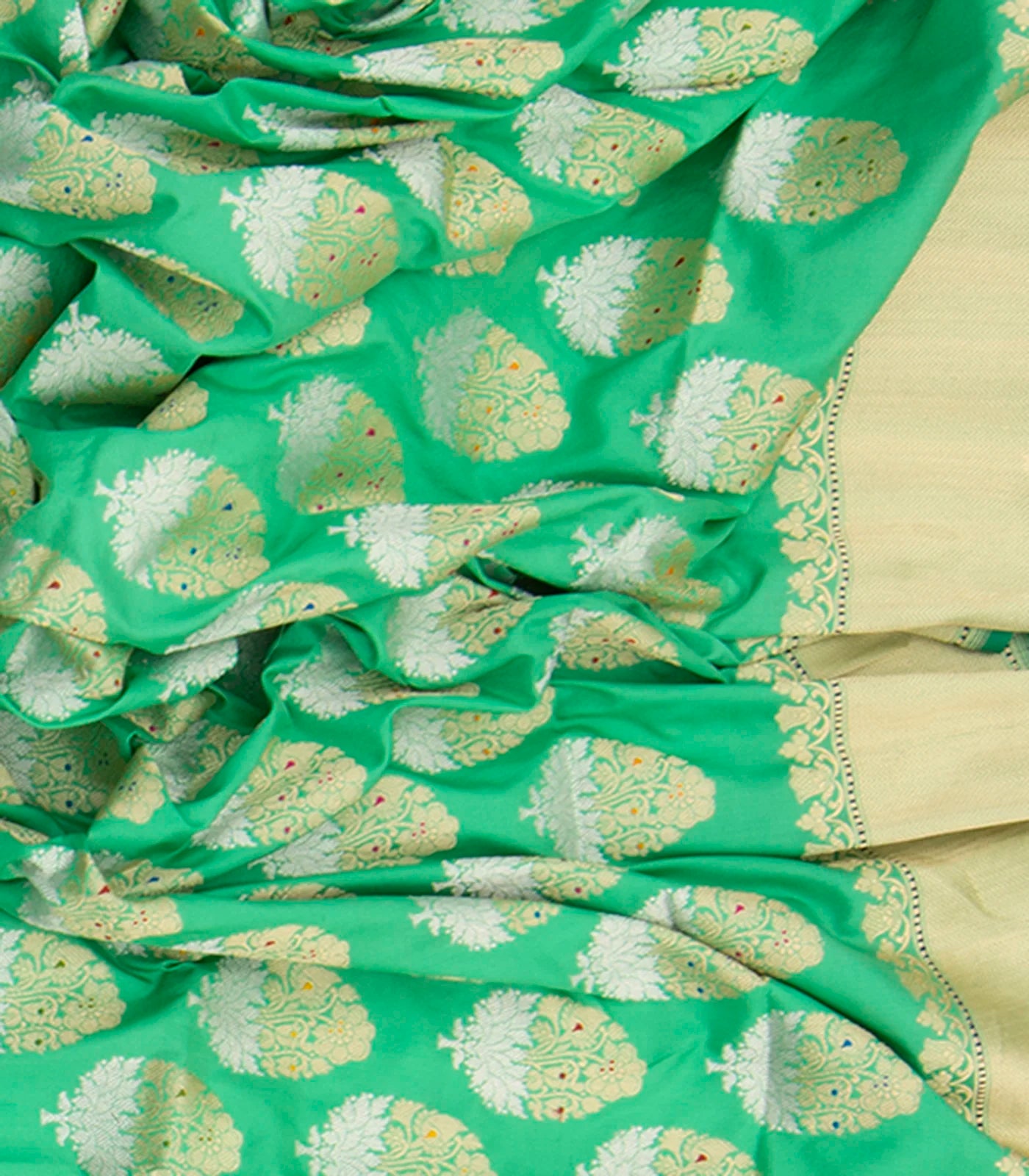 Green Handwoven Benares Silk Saree With Floral Motifs In Gold & Silver Zari