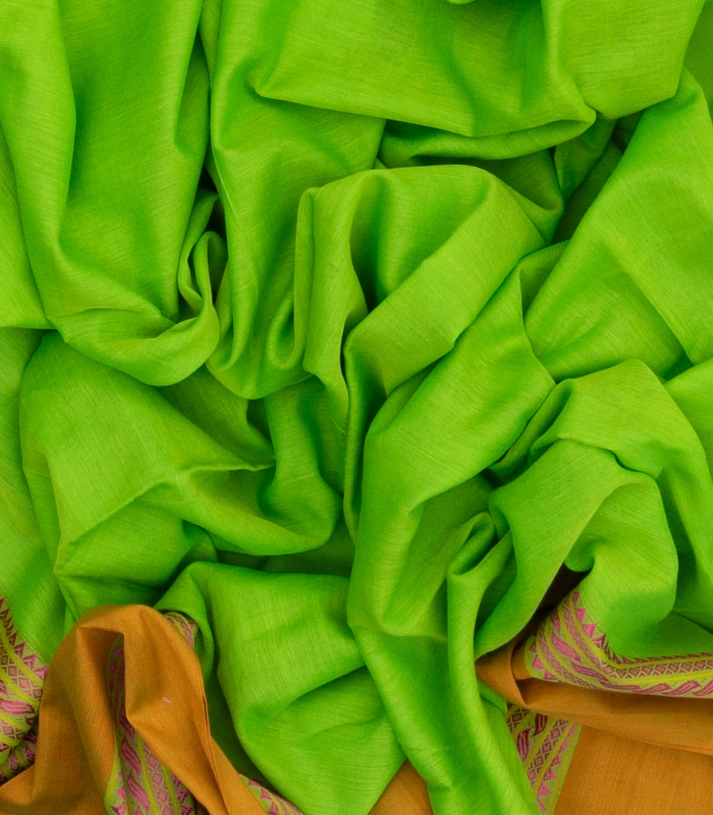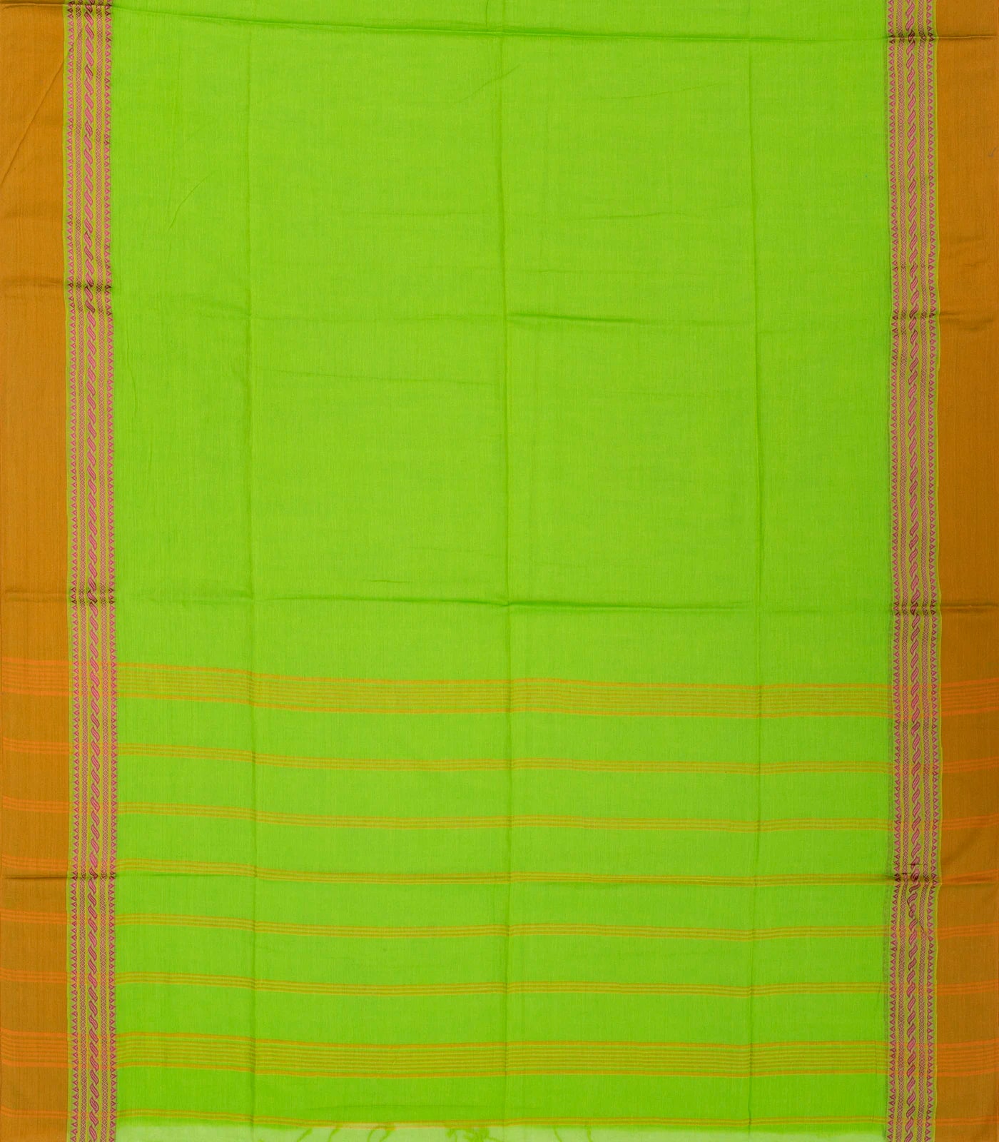 This woven bengal cotton saree is filled with plain green body along with contrast border and pallu