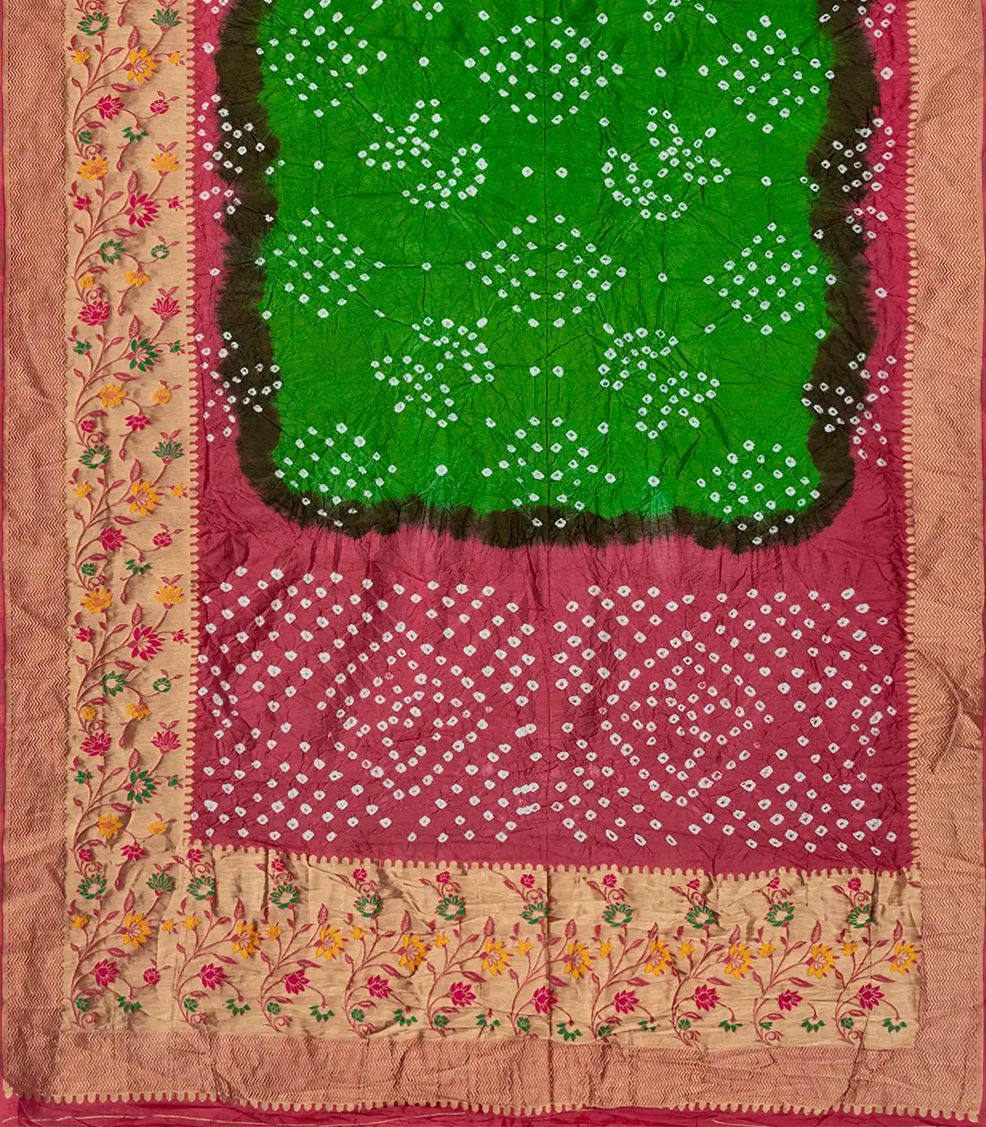Green Woven Blended Bandhej Saree With Paithani Border-Green