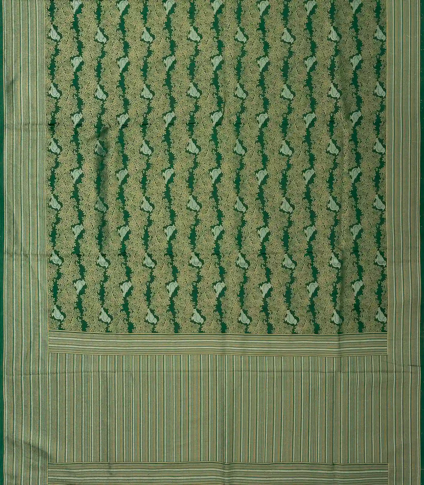 This woven blended soft silk saree is filled with bird vine motifs in green body along with border and pallu