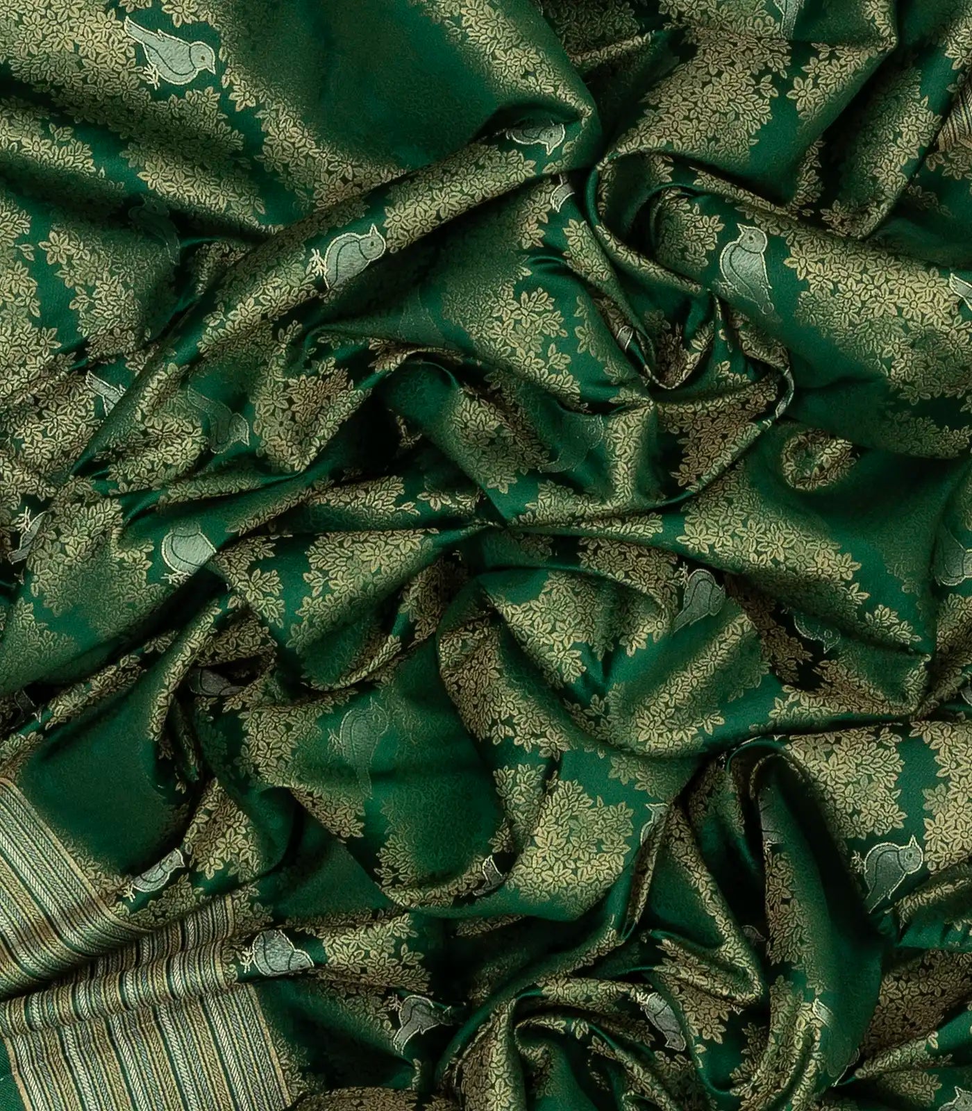 Green Woven Blended Soft Silk Saree With Bird Vine Motifs-BL3576